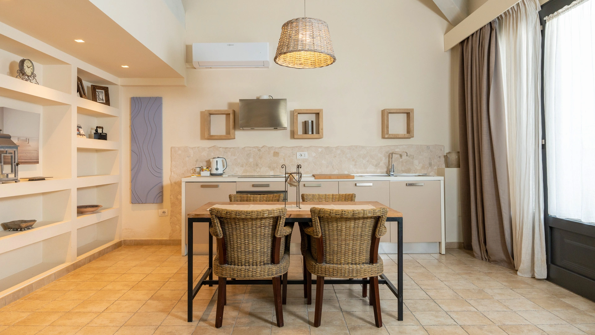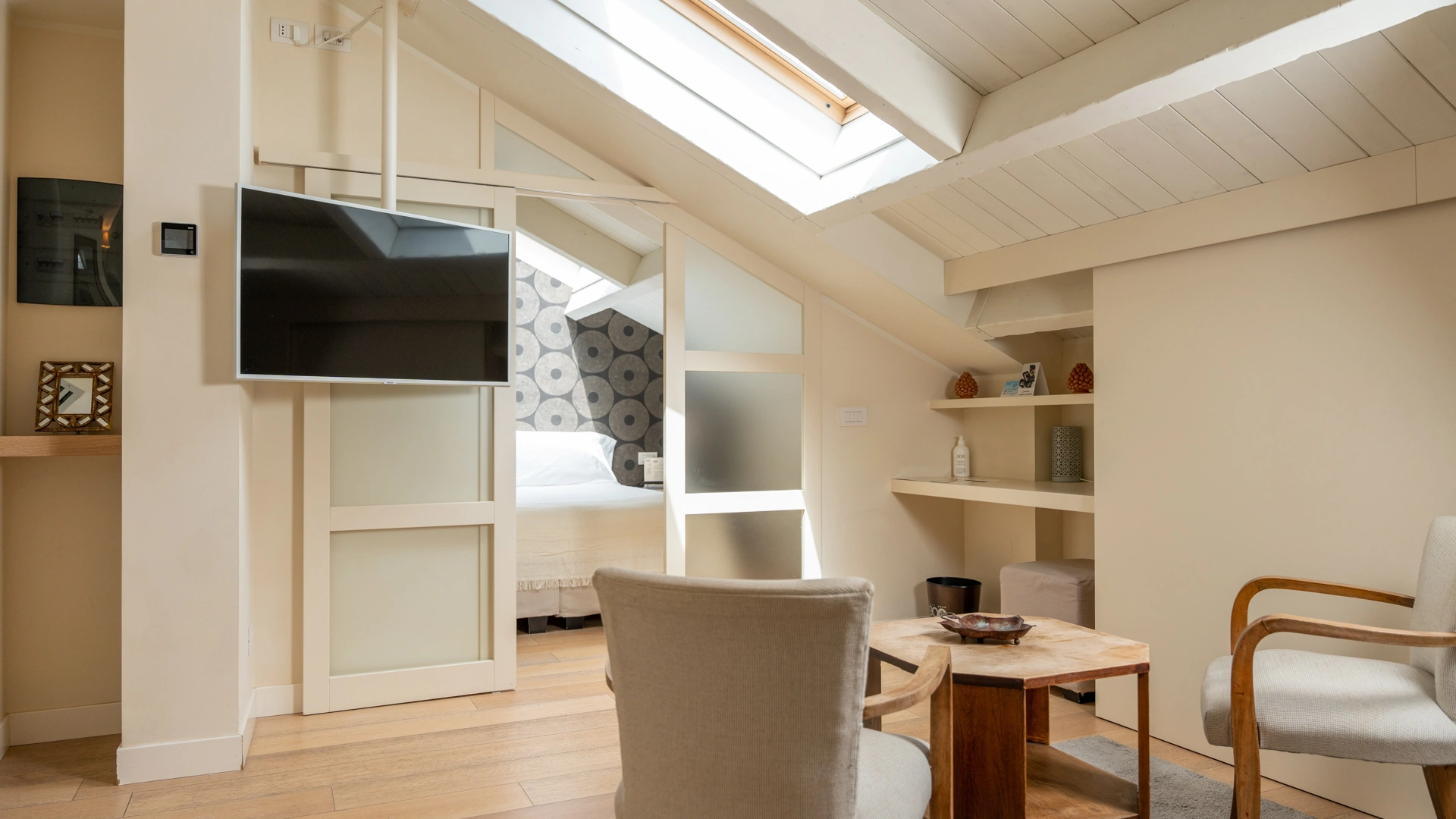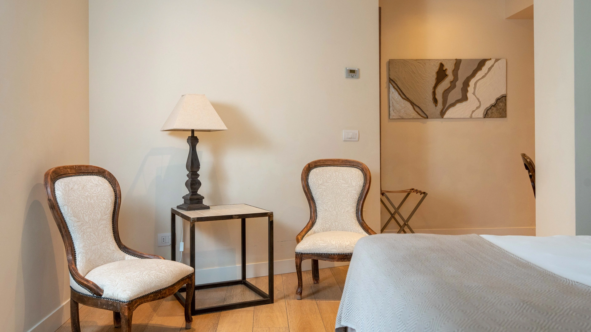 La struttura dispone di 16 sistemazioni, da soluzioni più essenziali ad alloggi raffinati ai piani alti, alcune con balcone arredato. Tutte sono dotate di aria condizionata, TV con canali Sky, Wi-Fi gratuito, telefono, cassaforte, bollitore con set per tè e caffè, frigobar e bagno privato con box doccia, phon a parete e set di cortesia. È disponibile anche un appartamento indipendente su due livelli, con soggiorno e cucina attrezzata.