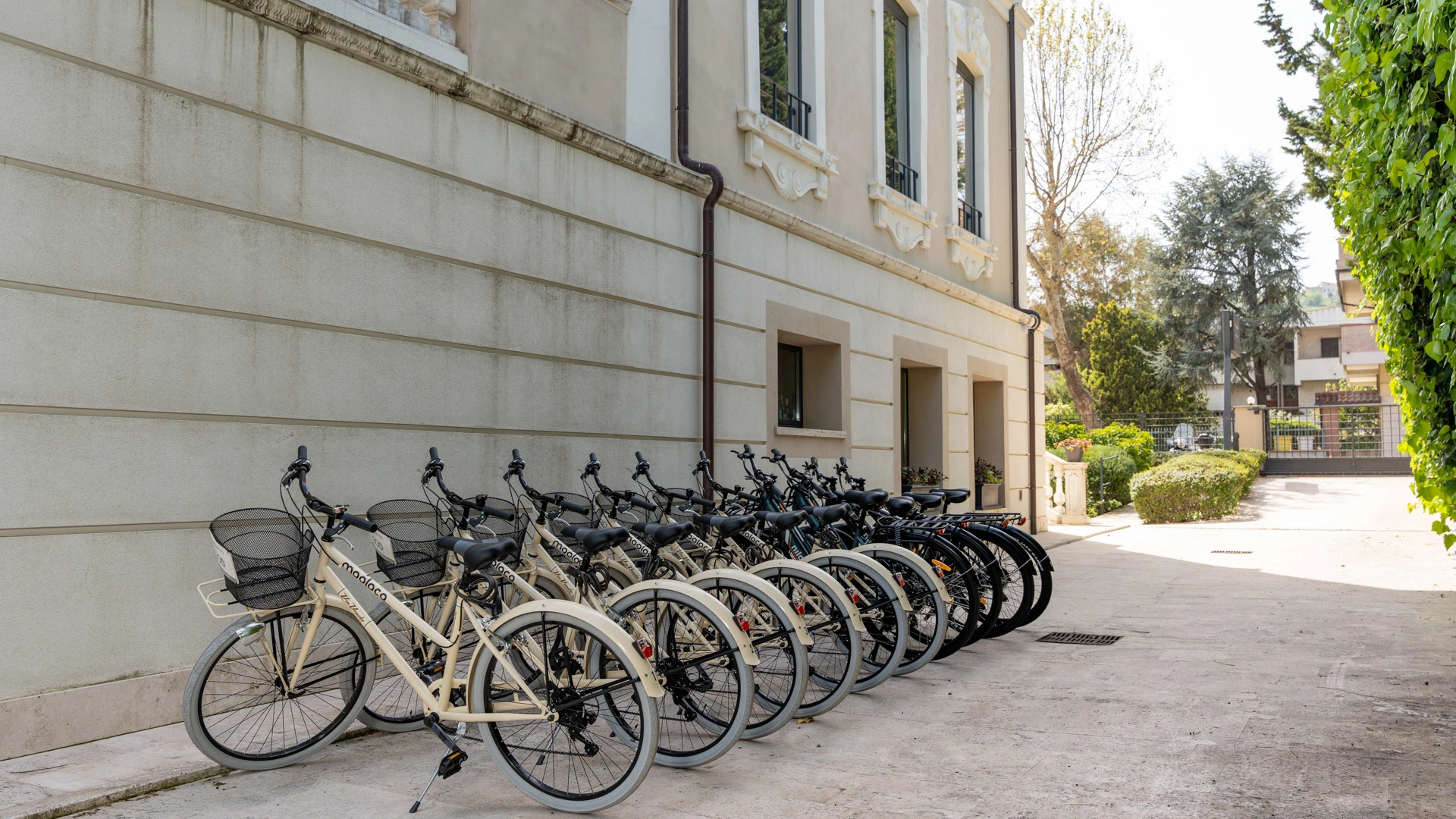 La struttura dispone di parcheggio privato interno scoperto e videosorvegliato, accessibile a pagamento. Presente anche una stazione di ricarica per auto elettriche. Gli spazi comuni includono un bar, eleganti salotti comuni e aree arredate con tavolini e sedie in giardino.