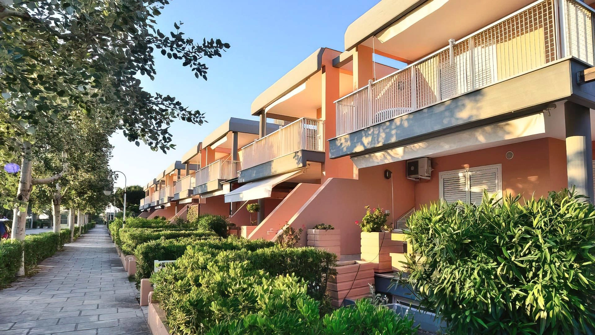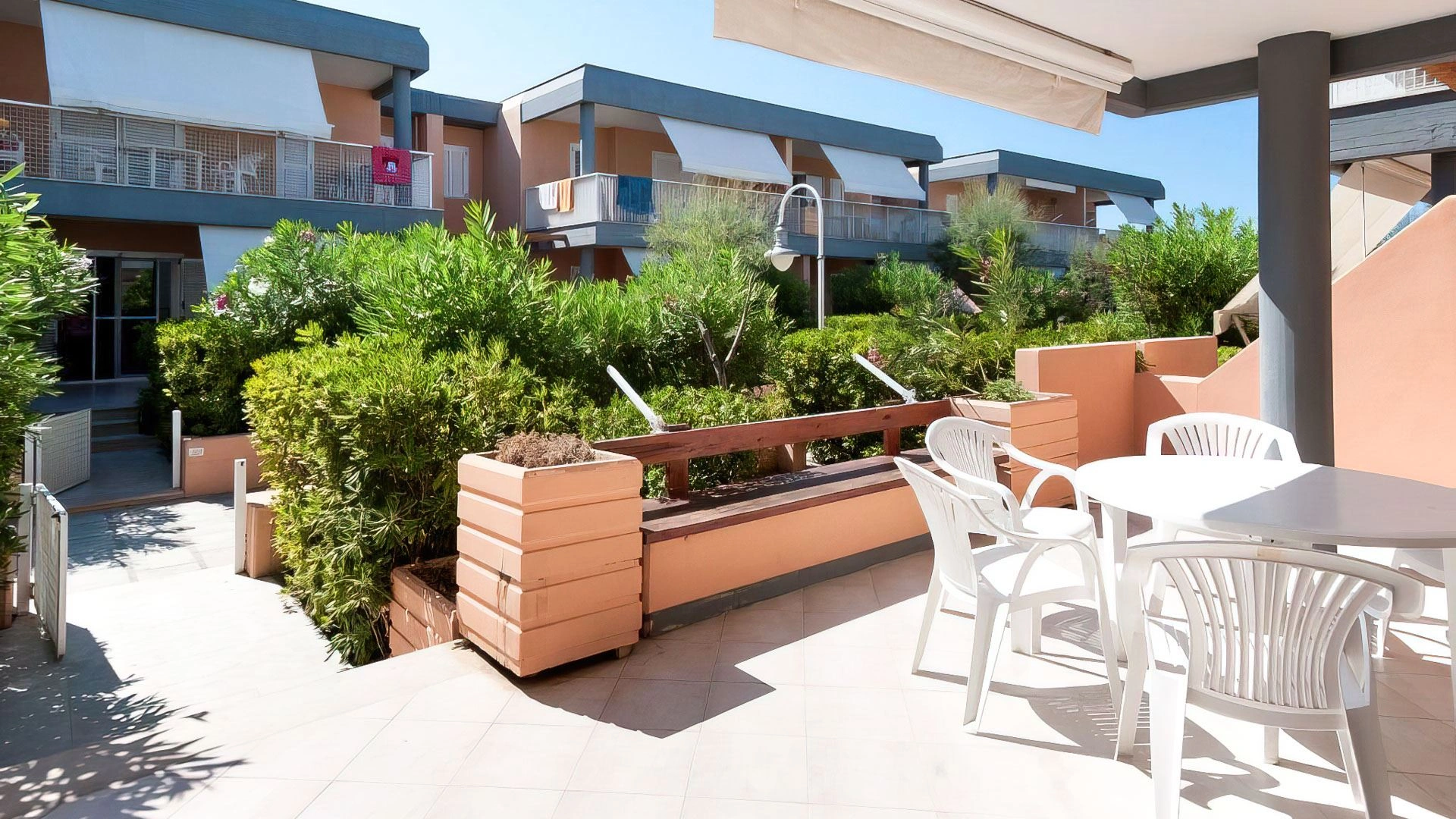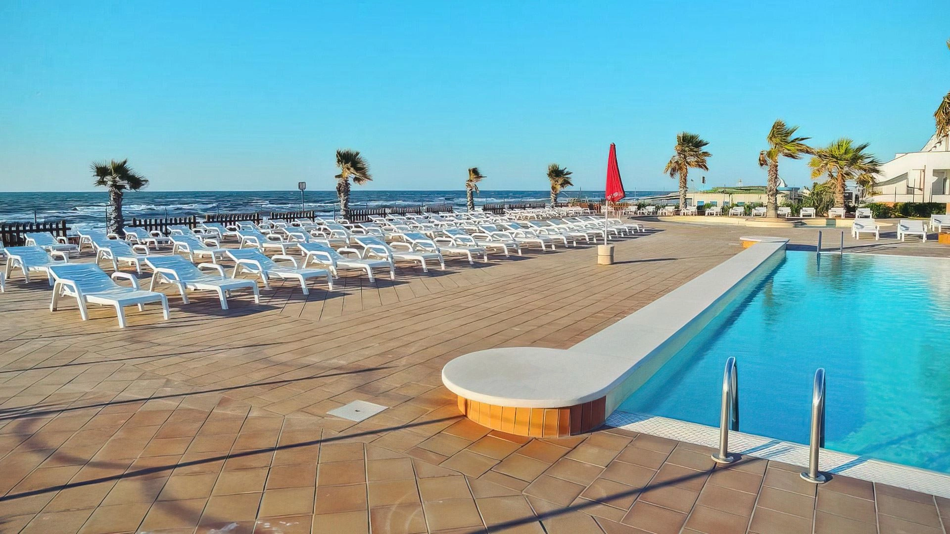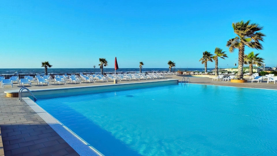 Der Garten der Residenz beherbergt zwei Swimmingpools mit Blick auf das Meer: einer für Erwachsene, der zweite zum Schwimmen für die ganze Familie. Die Pools sind von einem Solarium mit Liegestühlen umgeben. Es gibt eine Bar.