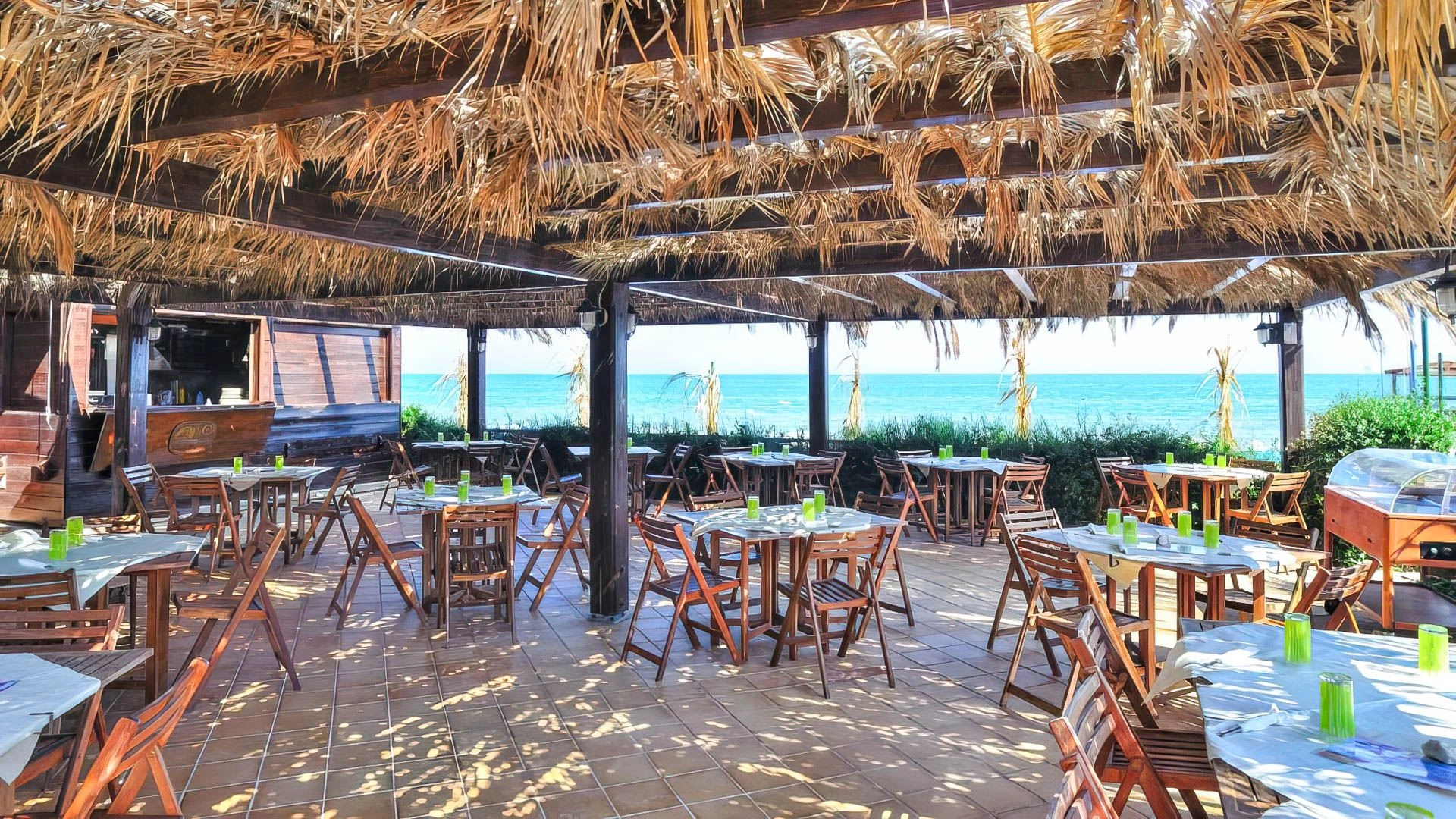 Das Blue Marine Village bietet jeden Morgen ein süßes Frühstück an, das Sie an der Poolbar genießen können. Zu den Mahlzeiten können Sie Fleisch- und Fischgerichte im Ristorante Pizzeria Sulle Piscine oder im La Terrazza Da Peppuzzo genießen. Am Strand gibt es die Beach Bar, wo Sie Snacks, Eis, Aperitifs und Cocktails finden.