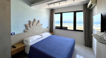 Die Zimmer verfügen über einen Balkon, Klimaanlage, Sat-TV, WLAN (Glasfaser), einen Safe, ein Telefon und ein Badezimmer mit Dusche und Haartrockner. Zimmer mit Meerblick sind auf Anfrage verfügbar.