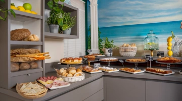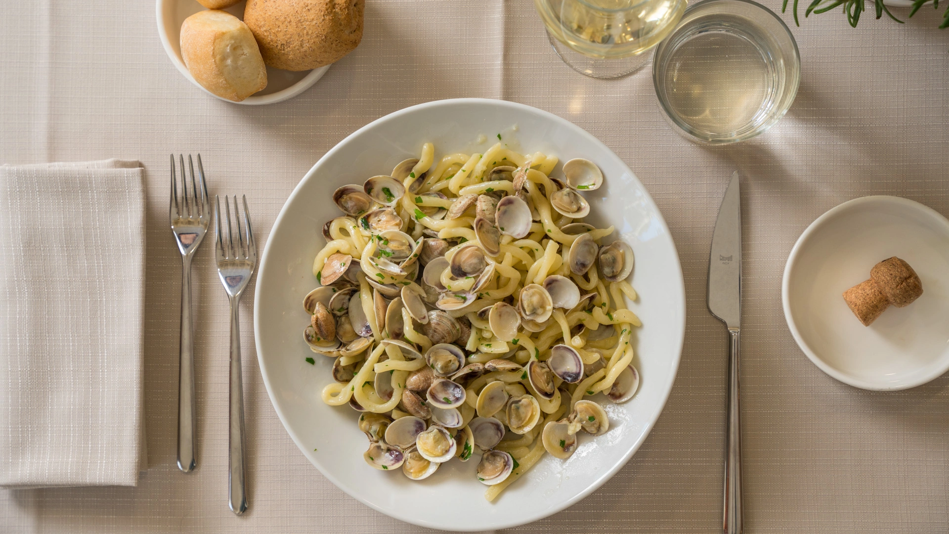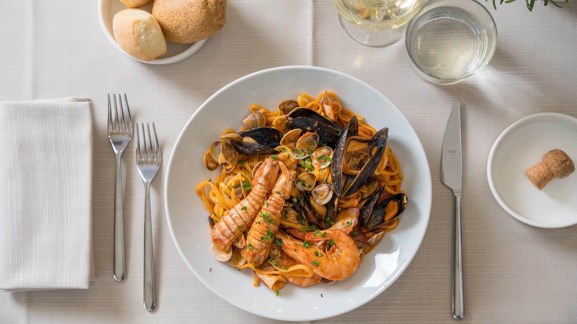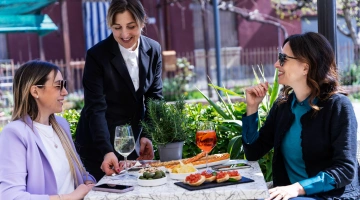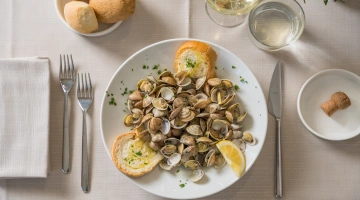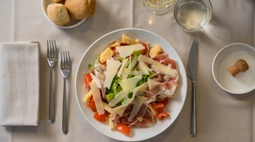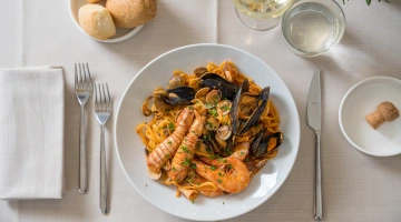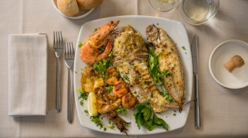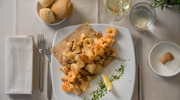 MITTAGESSEN UND ABENDESSEN: Zu den Mahlzeiten können Sie zwischen verschiedenen Menüs wählen, die mit lokalen Produkten und km0-Gemüse zubereitet werden. außerdem gibt es immer Fischgerichte mit dem Fang des Tages. Wasser, Wein und Cola inklusive.