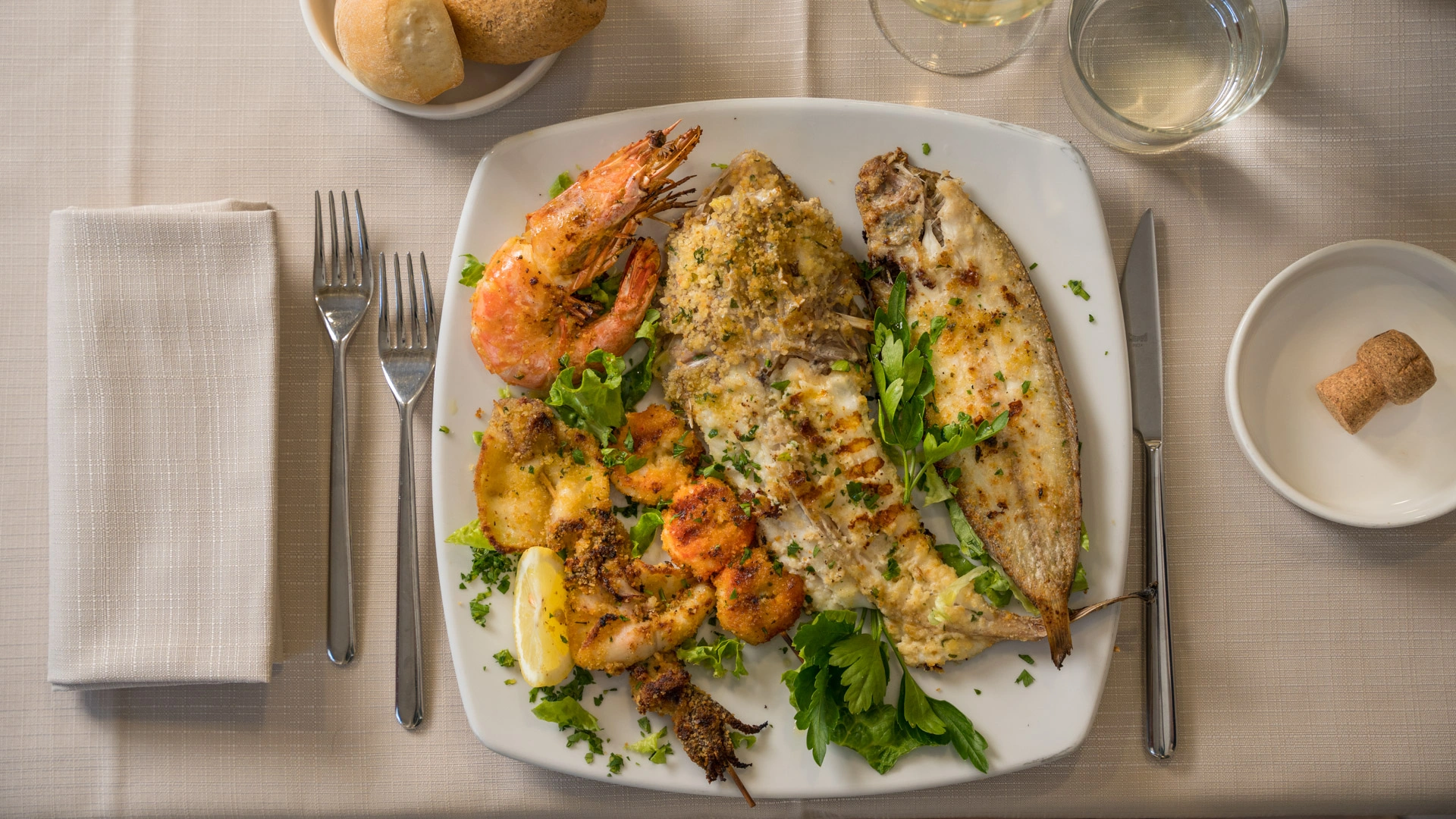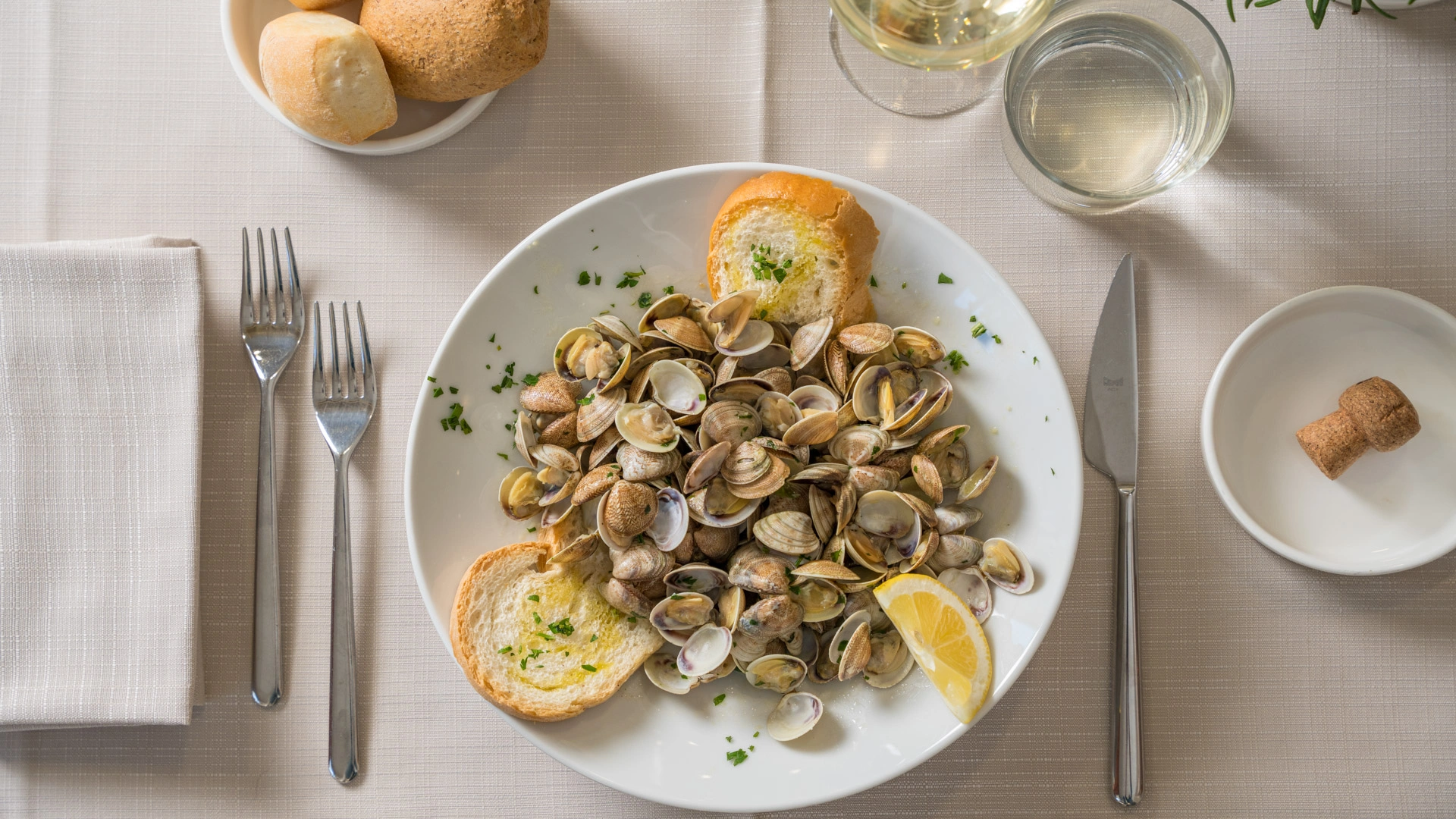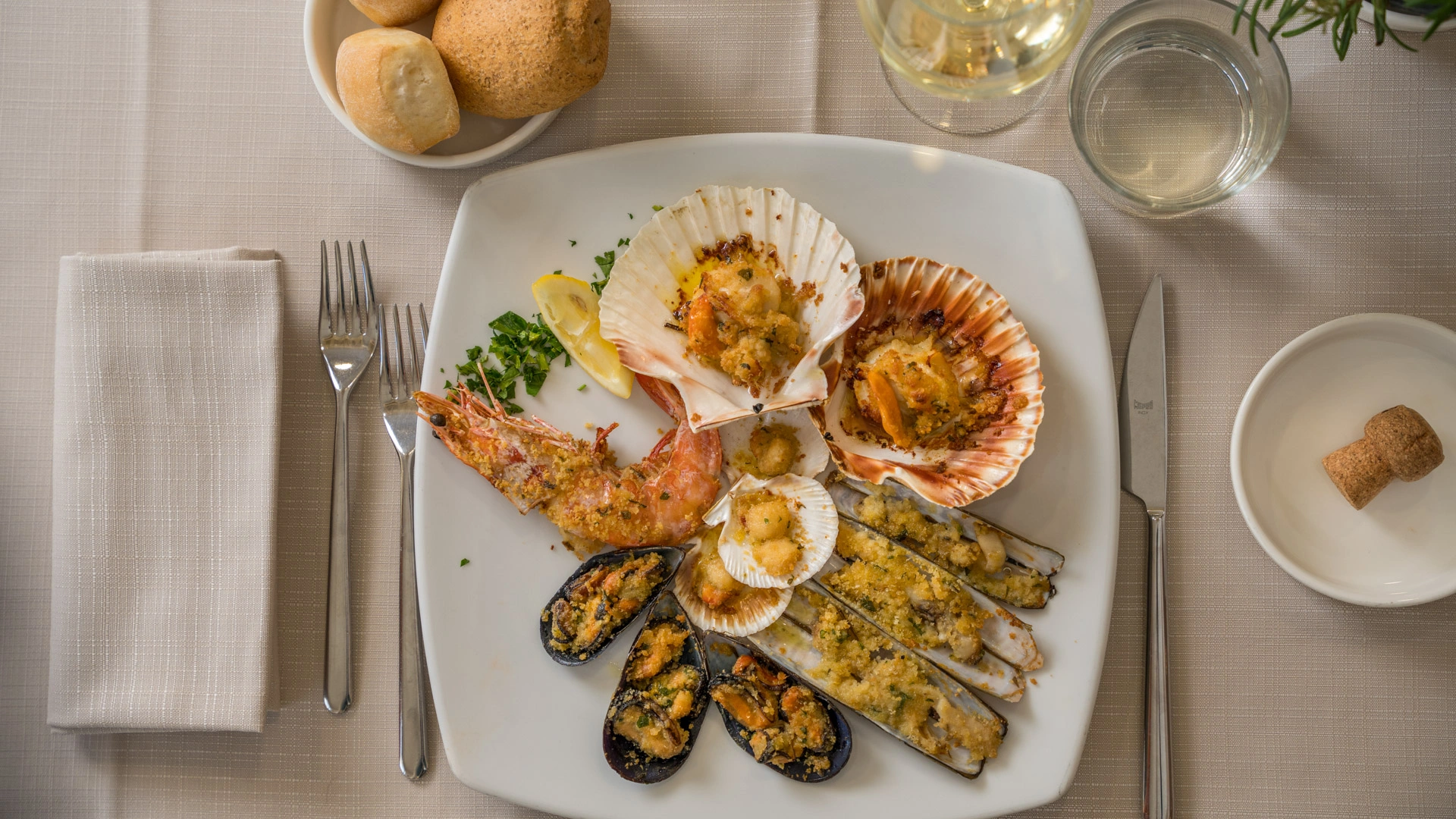 MITTAGESSEN UND ABENDESSEN: Zu den Mahlzeiten können Sie zwischen verschiedenen Menüs wählen, die mit lokalen Produkten und km0-Gemüse zubereitet werden. außerdem gibt es immer Fischgerichte mit dem Fang des Tages. Wasser, Wein und Cola inklusive.