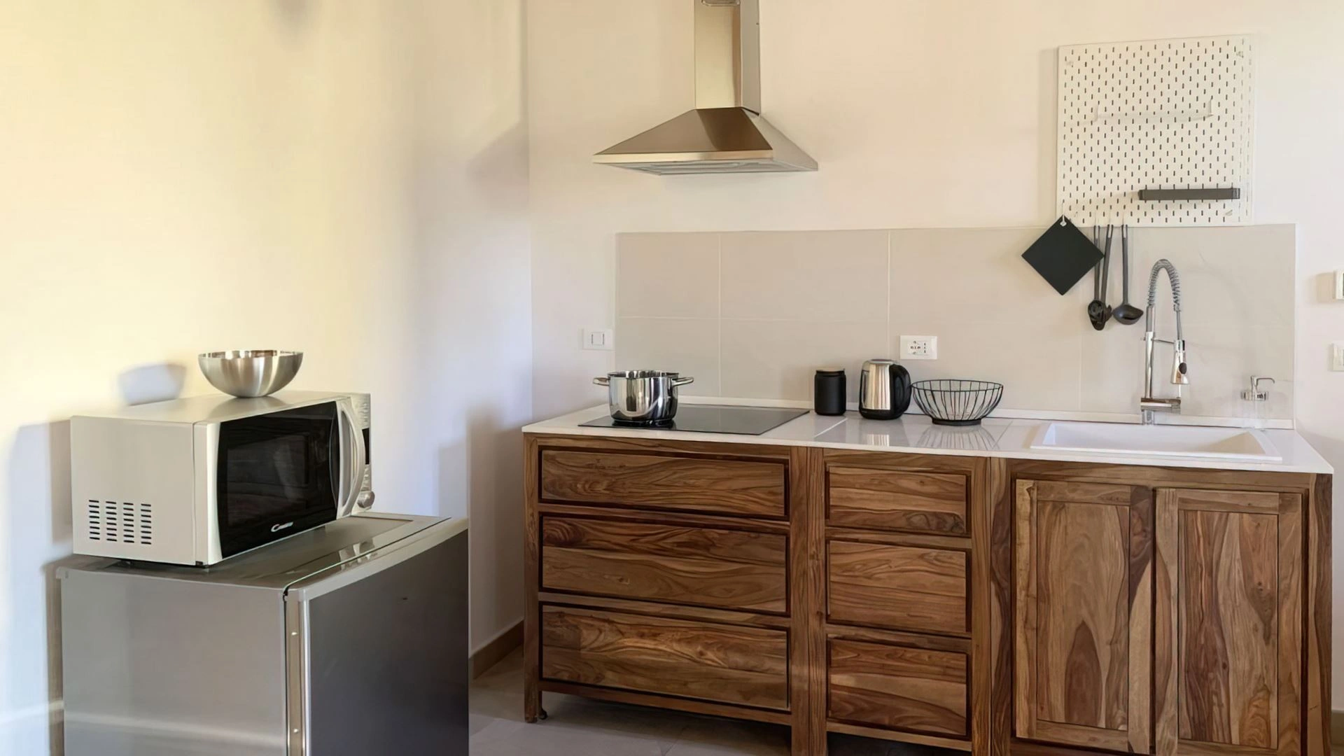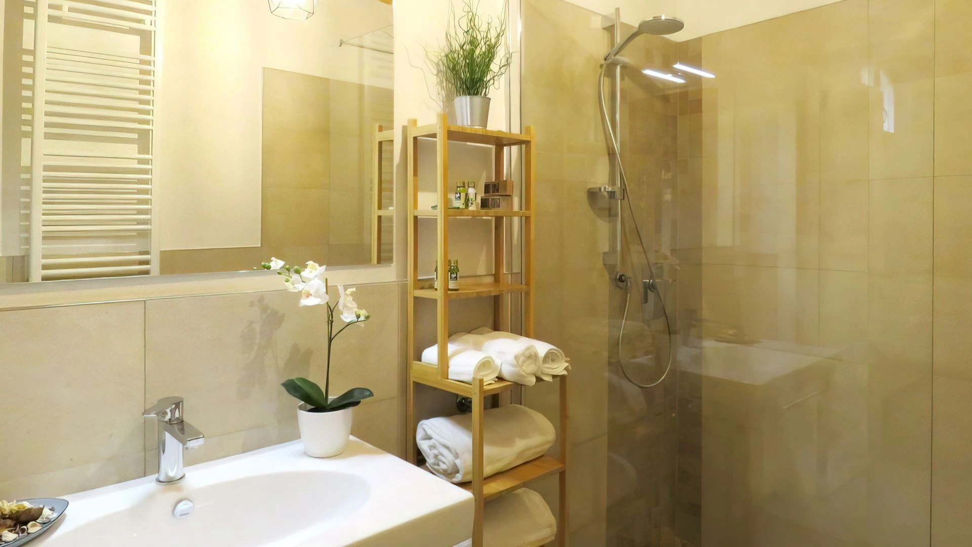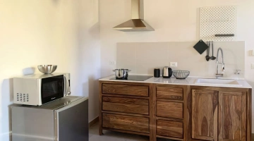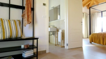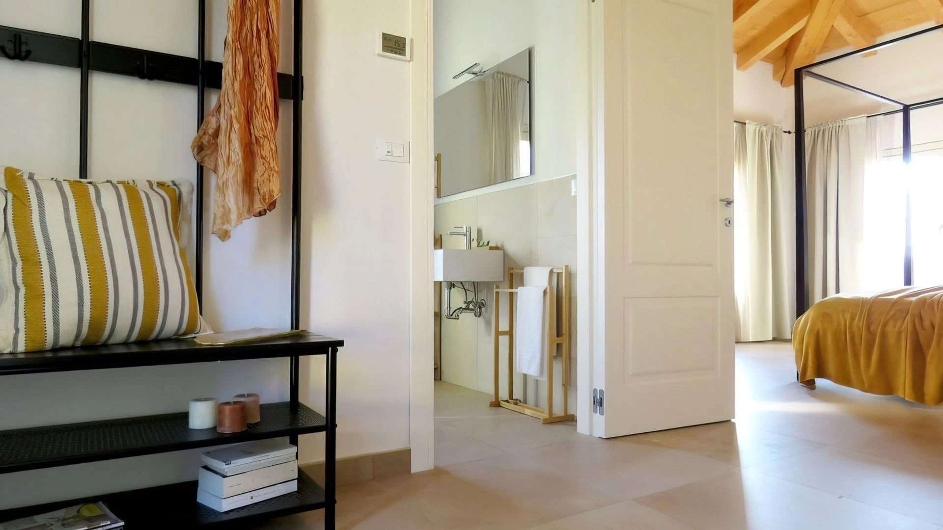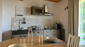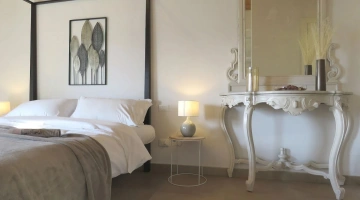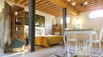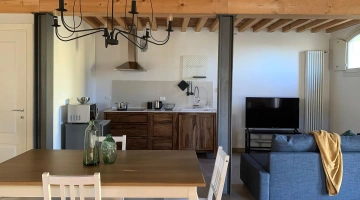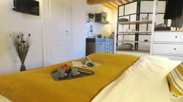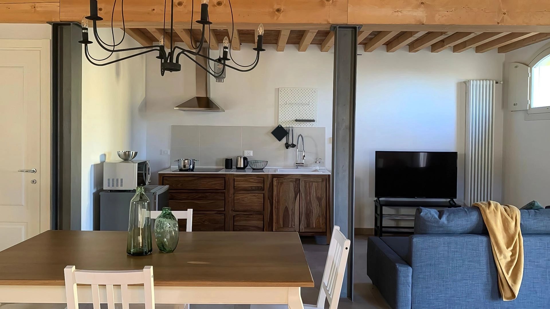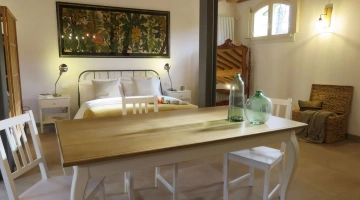 Die eleganten Apartments mit separatem Eingang, die nach der Renovierung des alten Stalls erbaut wurden, bewahren einige typische Elemente der ursprünglichen Architektur, wie Holzmöbel und Decken mit sichtbaren Balken. Dieser architektonische Stil wird mit modernen Räumen kombiniert, darunter ein Schlafbereich mit Doppelbett, ein eigenes Badezimmer mit Duschkabine und Haartrockner, ein Wohnbereich mit Flachbild-TV-Ecke und eine Küche mit Herd, Mikrowelle, Wasserkocher, Kaffeemaschine und Kühlschrank. Beide Typen, Classic und Superior, bieten Platz für bis zu 4 Personen plus ein Kinderbett.