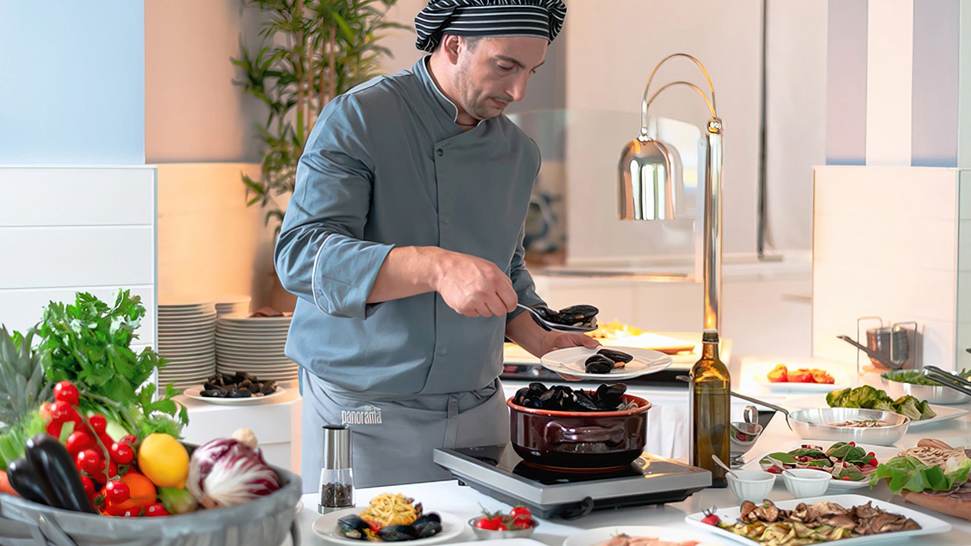 ABENDESSEN: serviert als Buffet mit Showcooking, Pasta und Desserts sind hausgemacht.