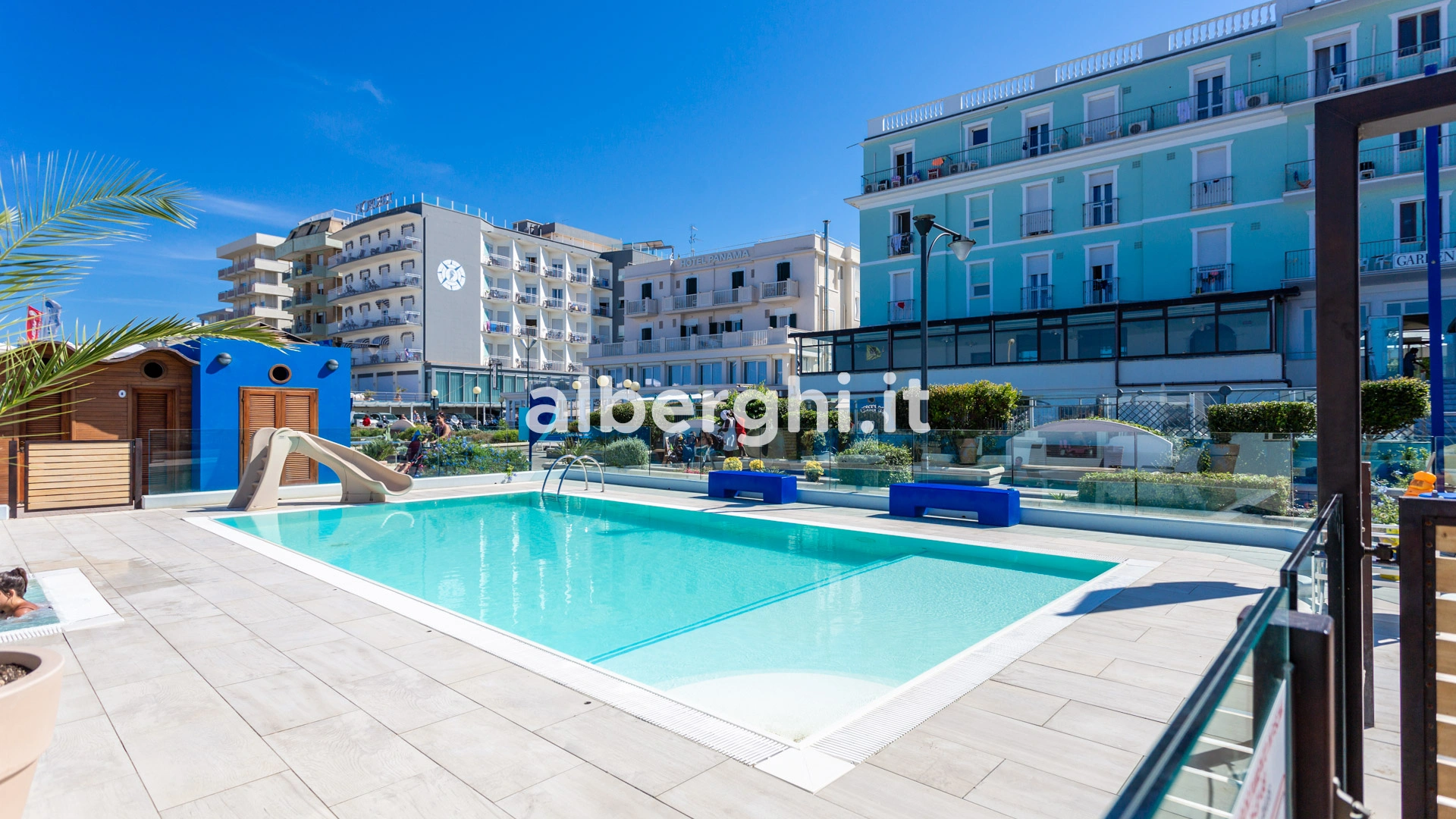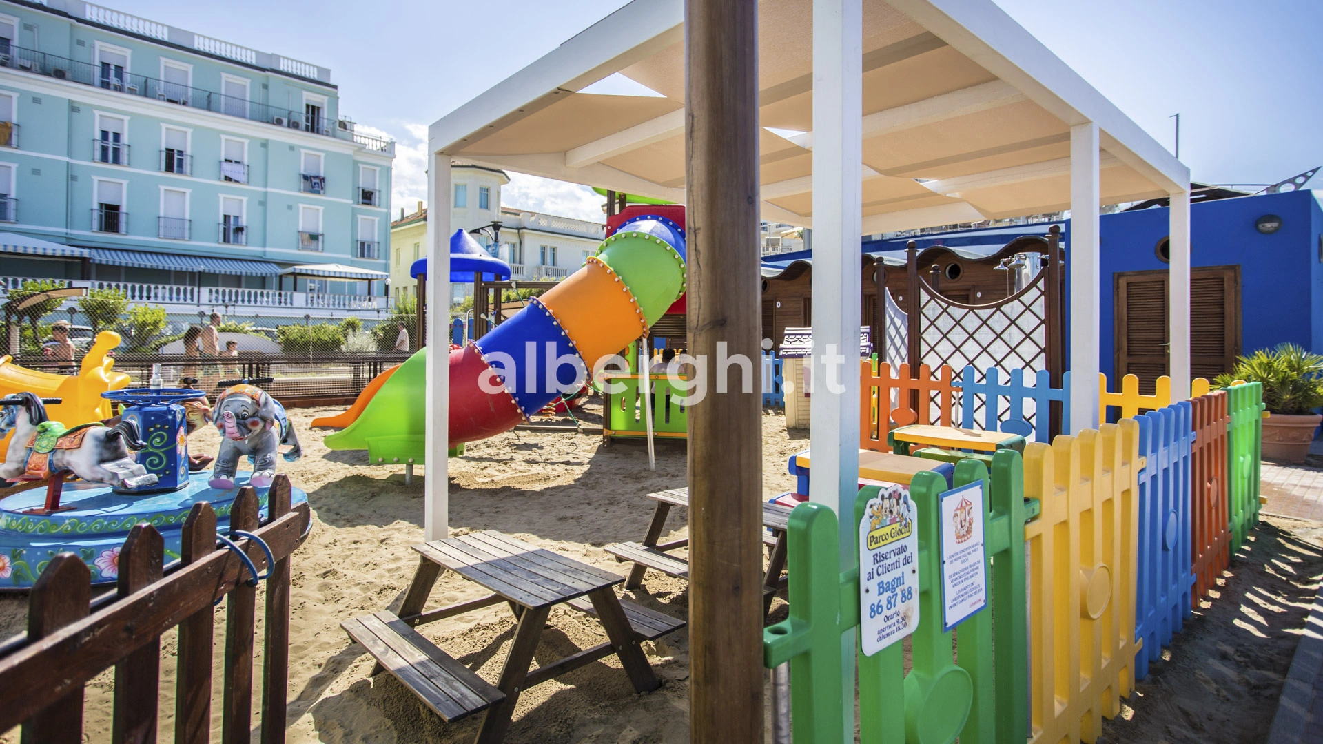 Das Hotel hat eine Sondervereinbarung mit den Strandabschnitten Nr. 86-87-88, wo die Gäste einen Swimmingpool, einen Whirlpool, einen Spielplatz und Unterhaltungsmöglichkeiten vorfinden werden.