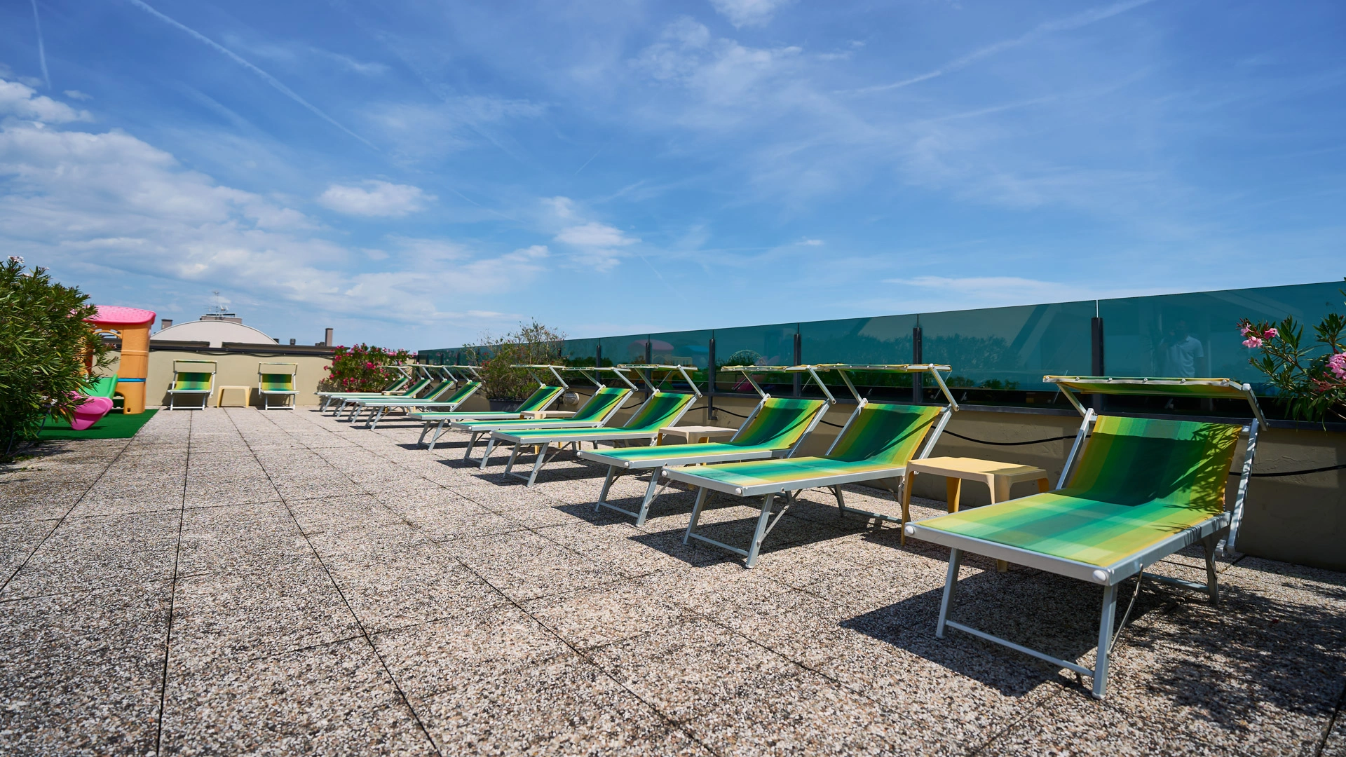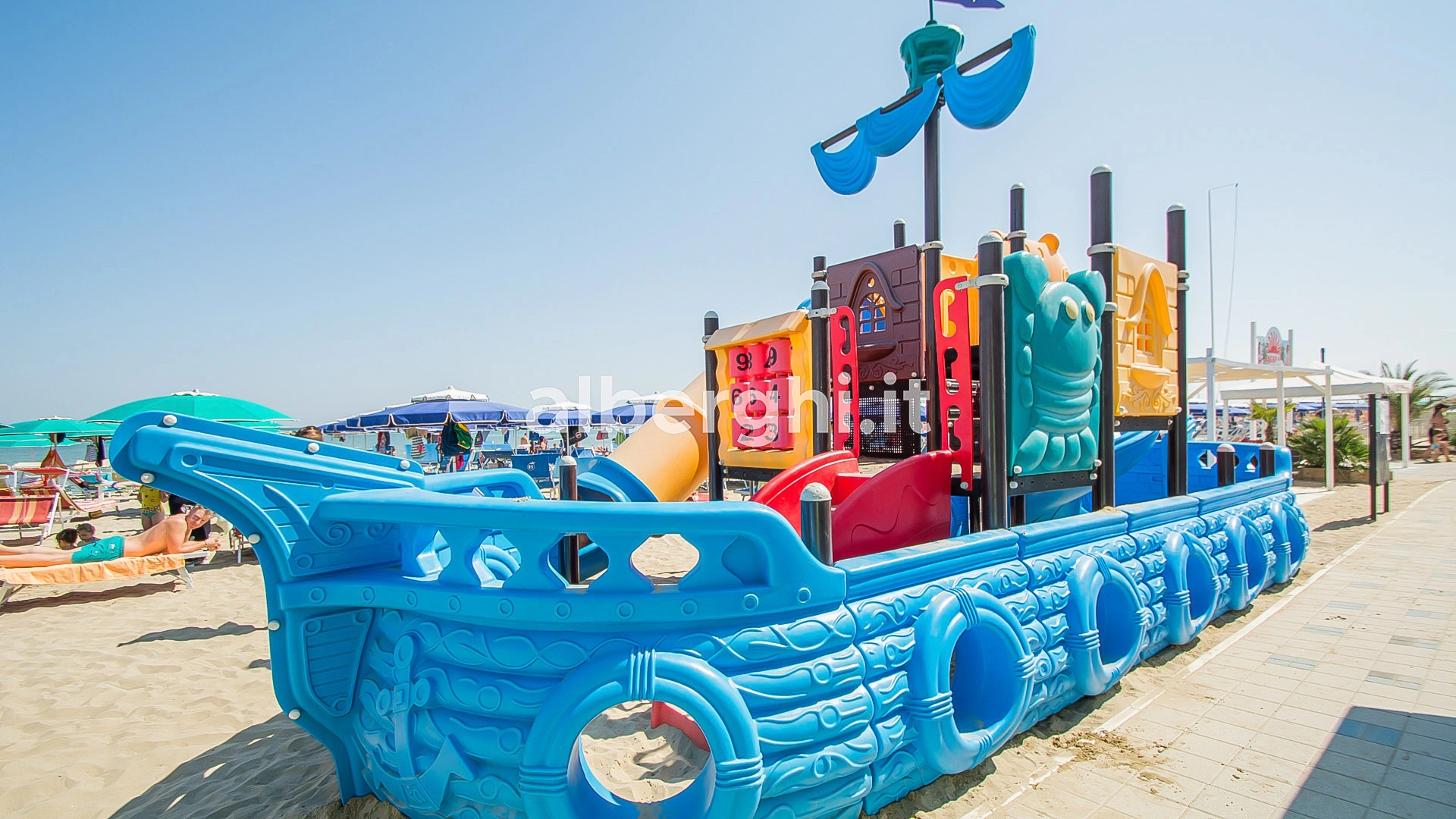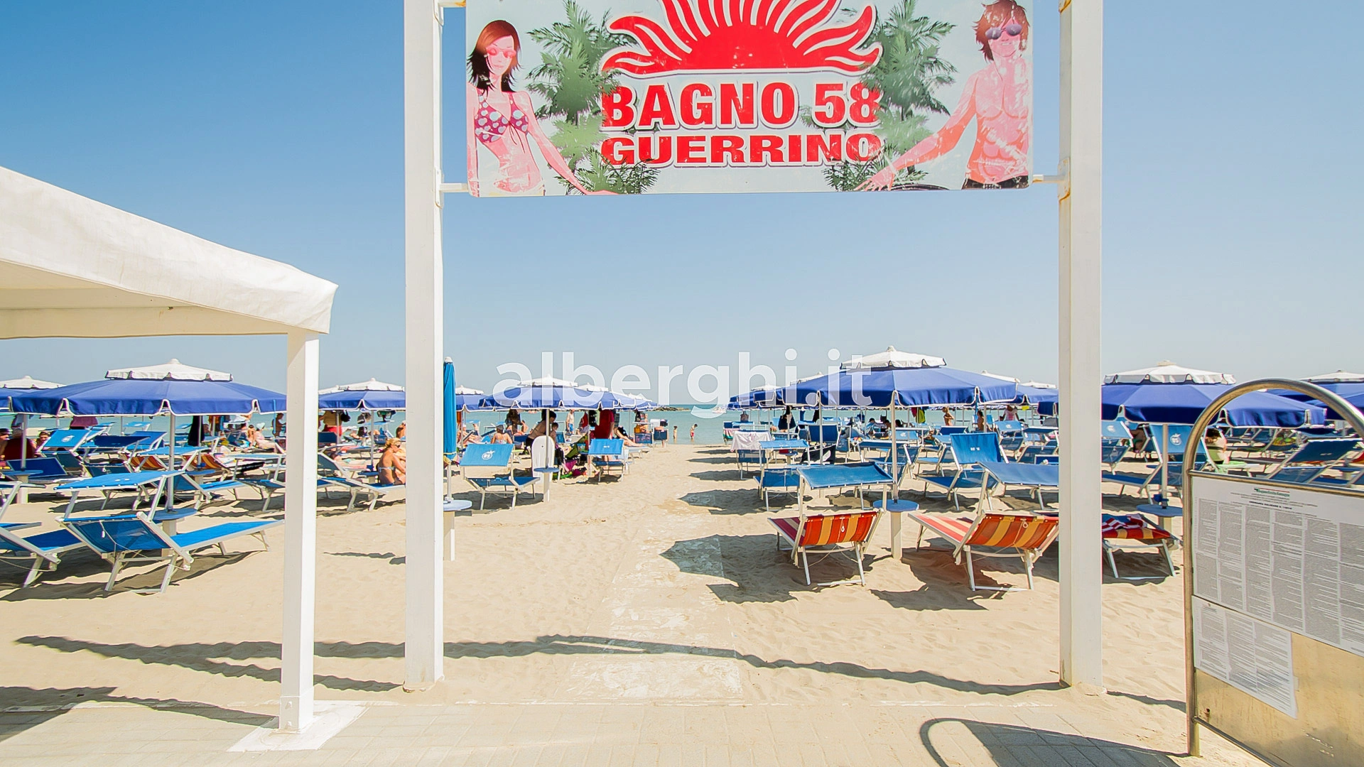 Das Hotel hat eine Vereinbarung mit Bagno Nr. 58, ausgestattet mit einem Kinderspielplatz, Unterhaltung und Babyclub. Ebenfalls in der Nähe befindet sich der kostenlose Strand Polo Est Village mit Unterhaltung, Sportplätzen, Themenabenden, Miniclub, Unterhaltung und Fitnessbereich.