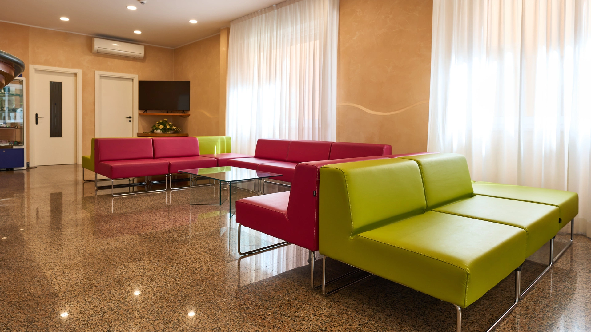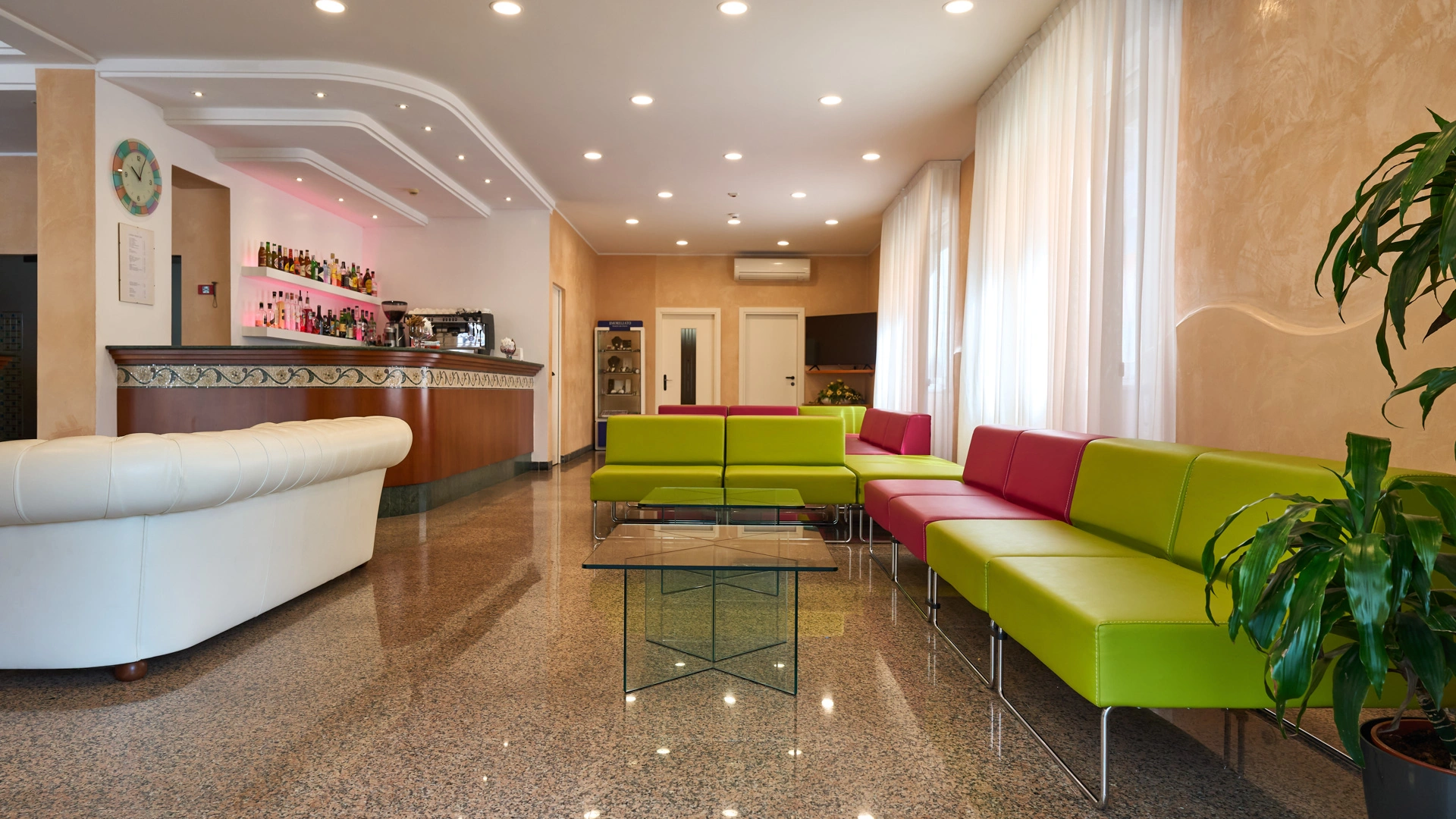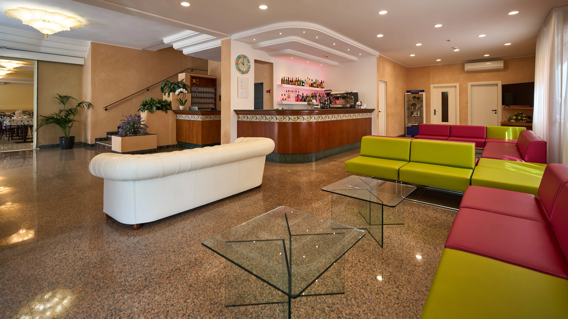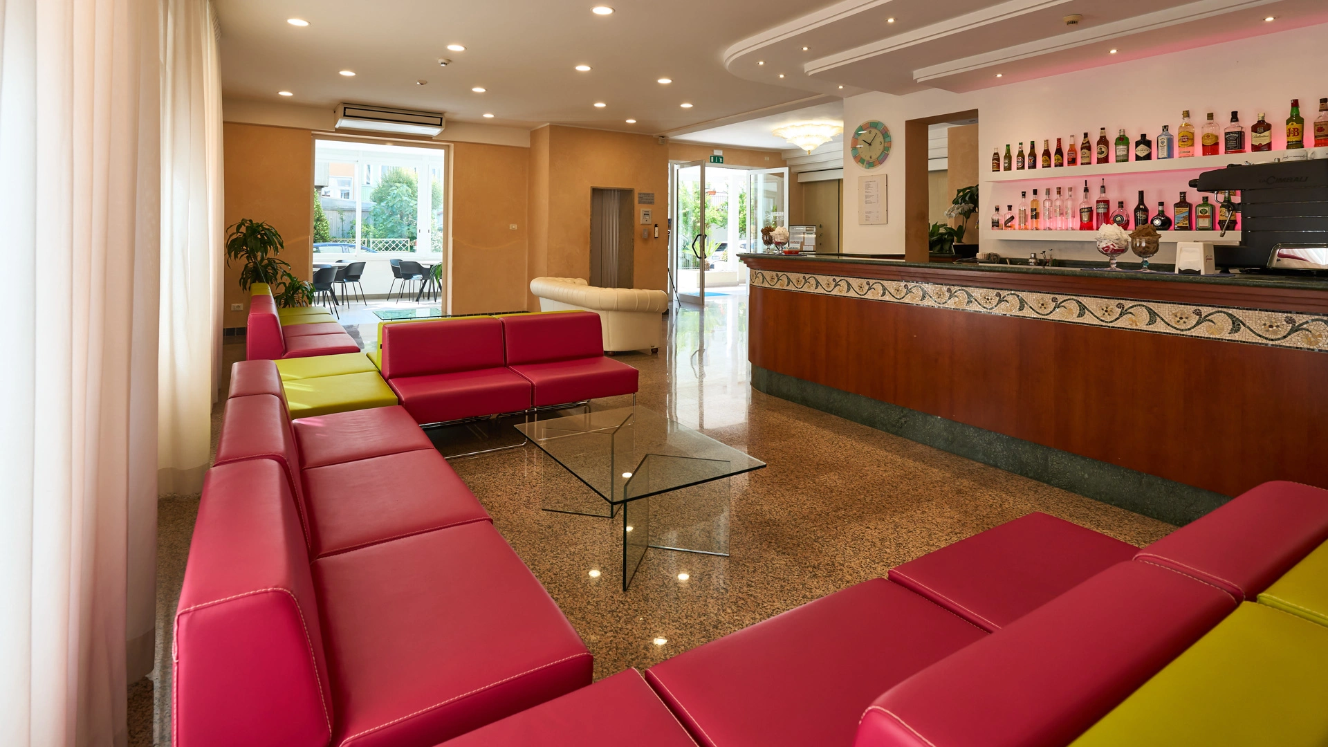 Das Hotel hat eine Vereinbarung mit Bagno Nr. 58, ausgestattet mit einem Kinderspielplatz, Unterhaltung und Babyclub. Ebenfalls in der Nähe befindet sich der kostenlose Strand Polo Est Village mit Unterhaltung, Sportplätzen, Themenabenden, Miniclub, Unterhaltung und Fitnessbereich.