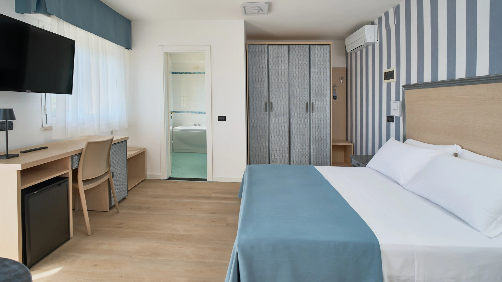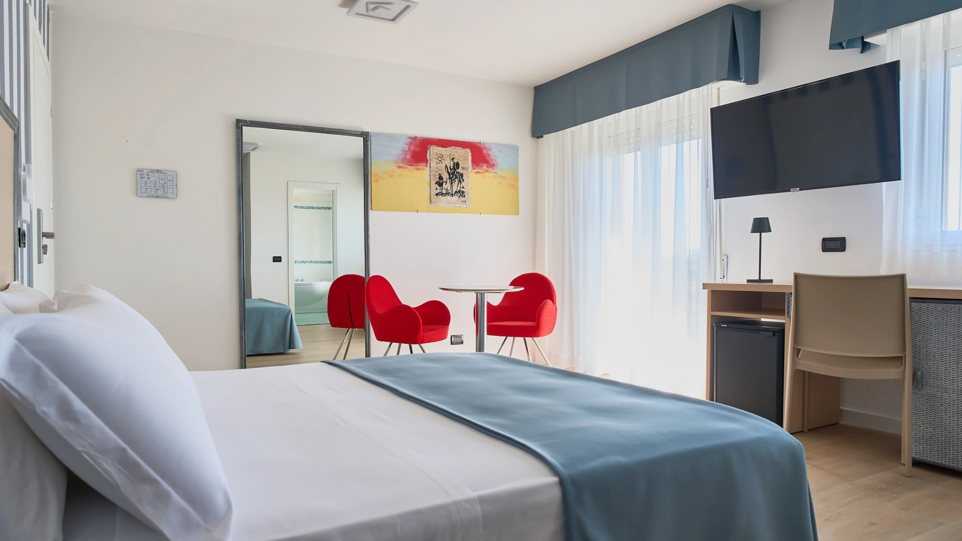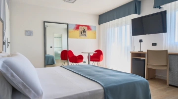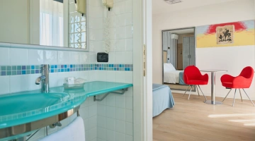JUNIOR SUITE: geräumig, mit Entspannungsecke, großem Badezimmer mit Hydromassage-Badewanne, 32-Zoll-Sat-TV, Minibar.