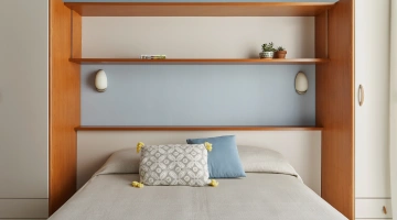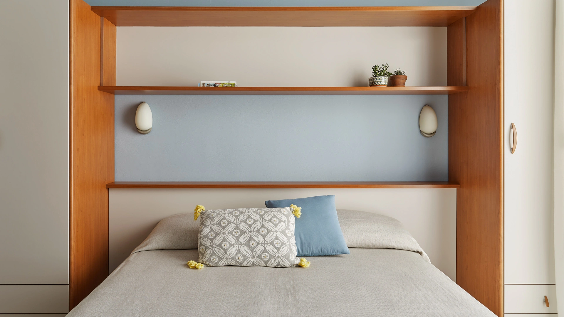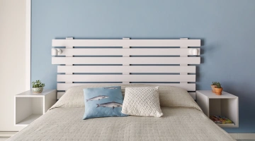 Im Zimmer: Kinderbetten und Kinderbetten mit Seitenteilen.