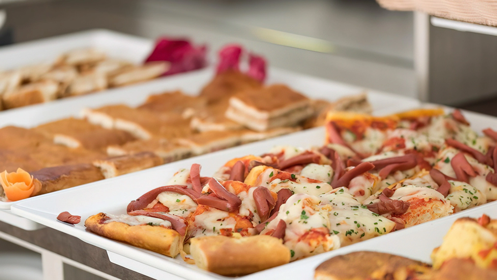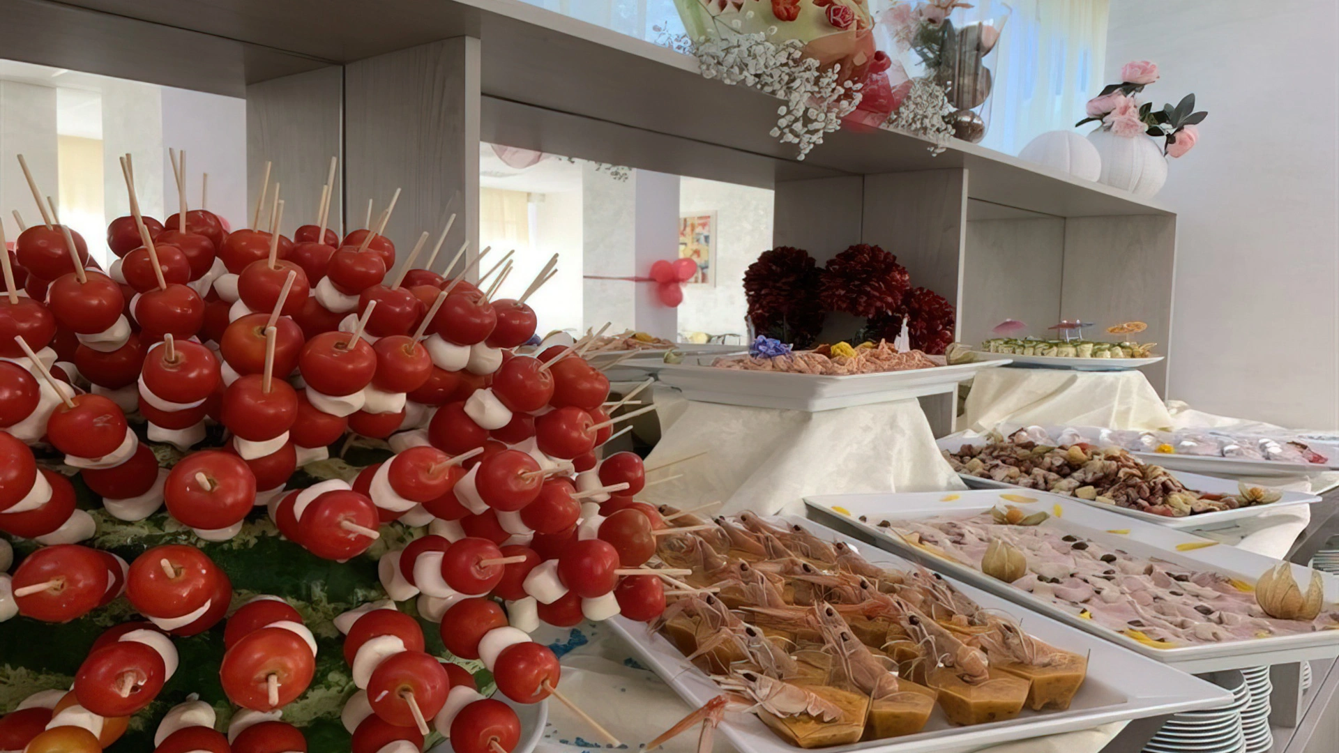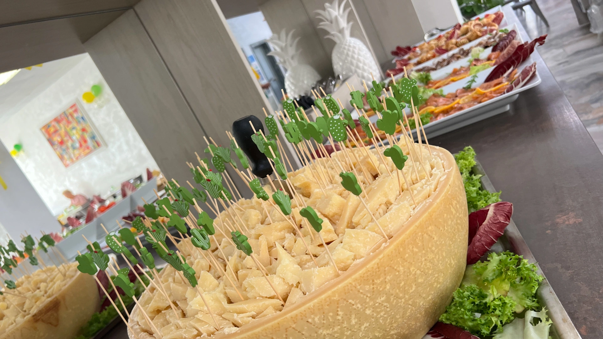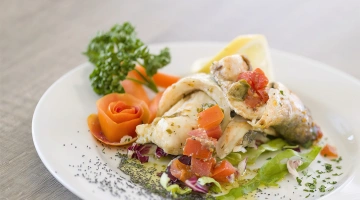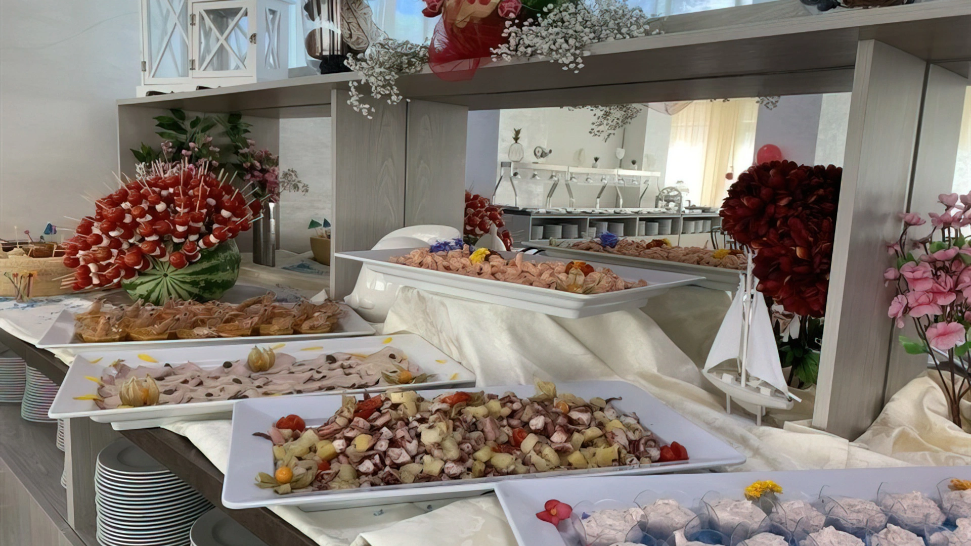 MITTAGESSEN UND ABENDESSEN: Buffets mit Fleisch- und Fischgerichten, Vorspeisen, Beilagen und Vorspeisen, hausgemachte Desserts.
