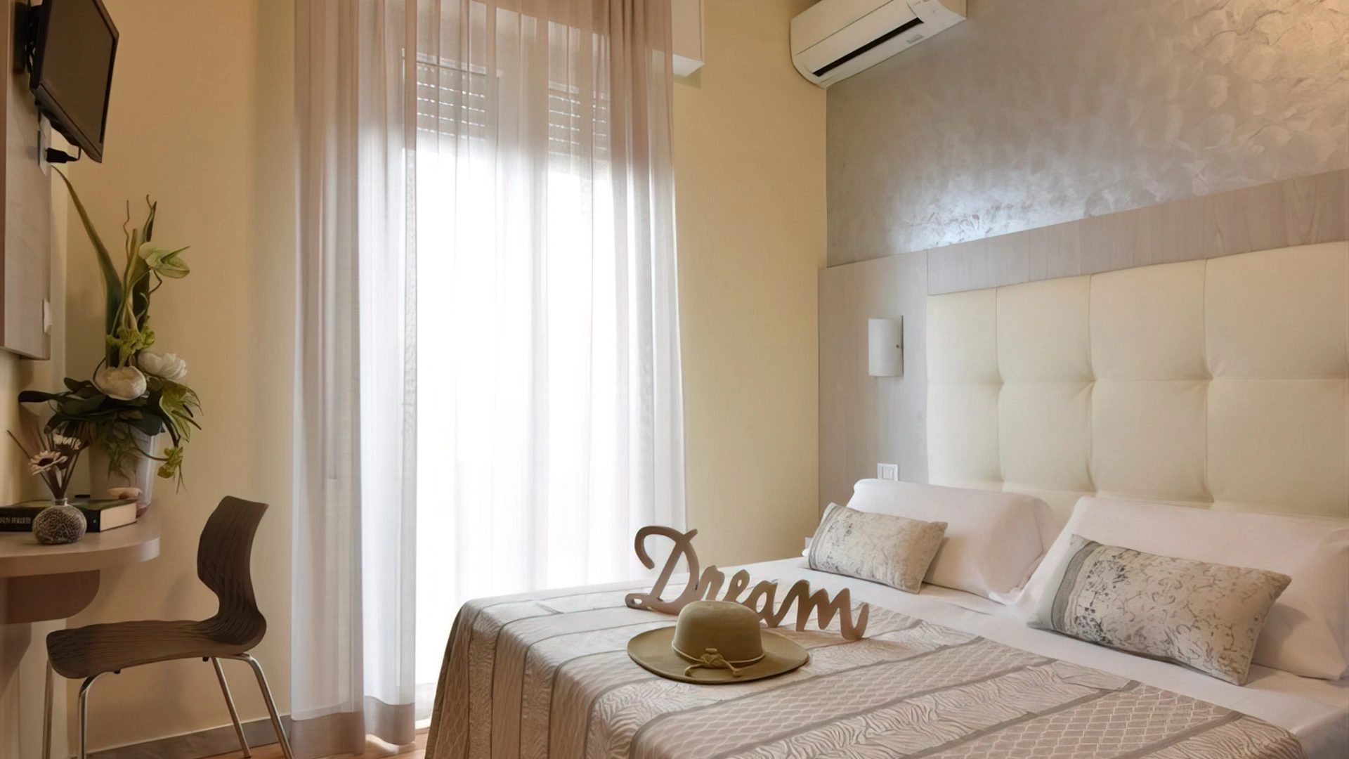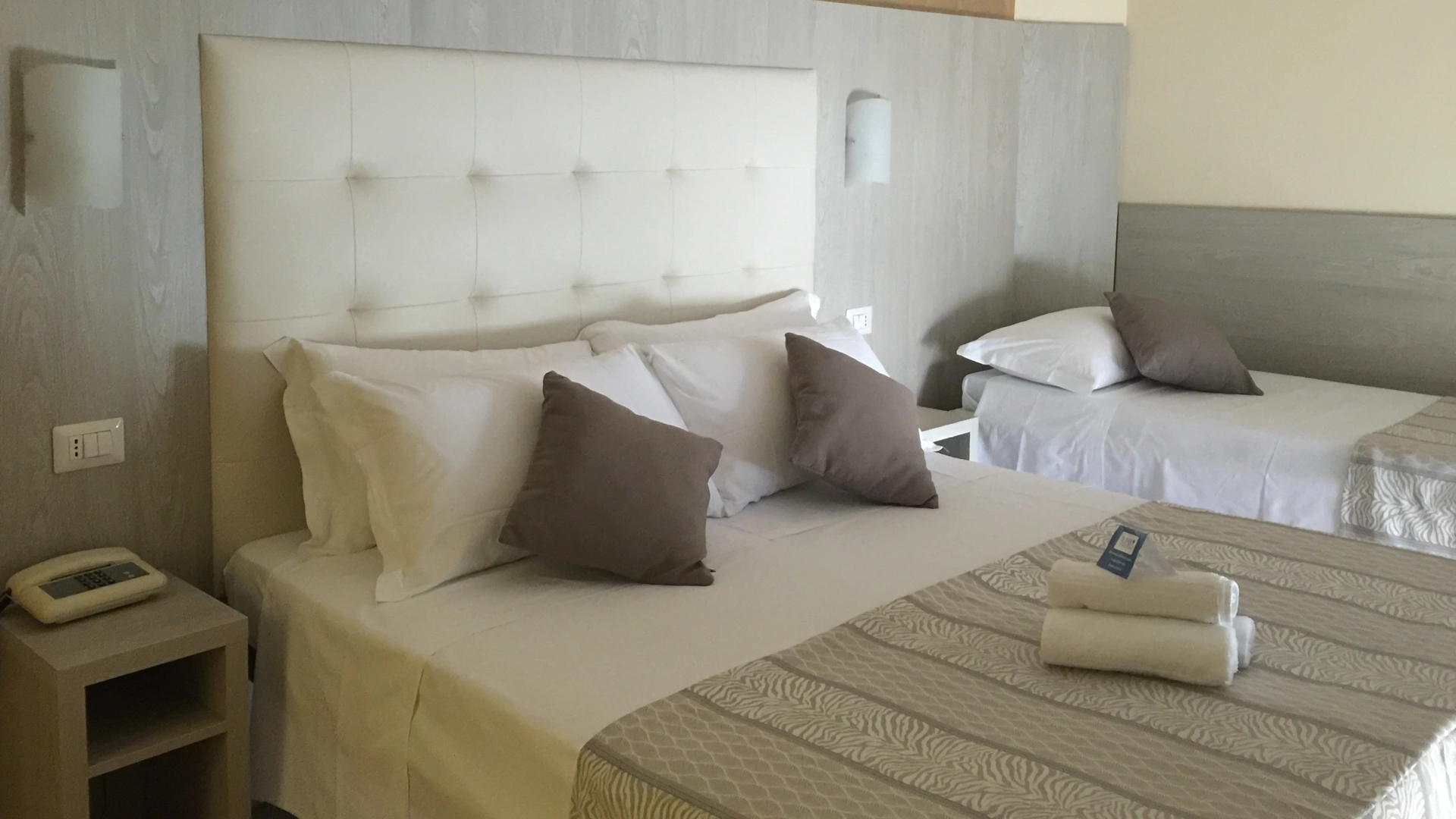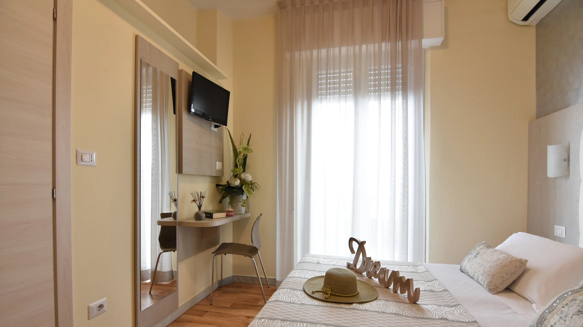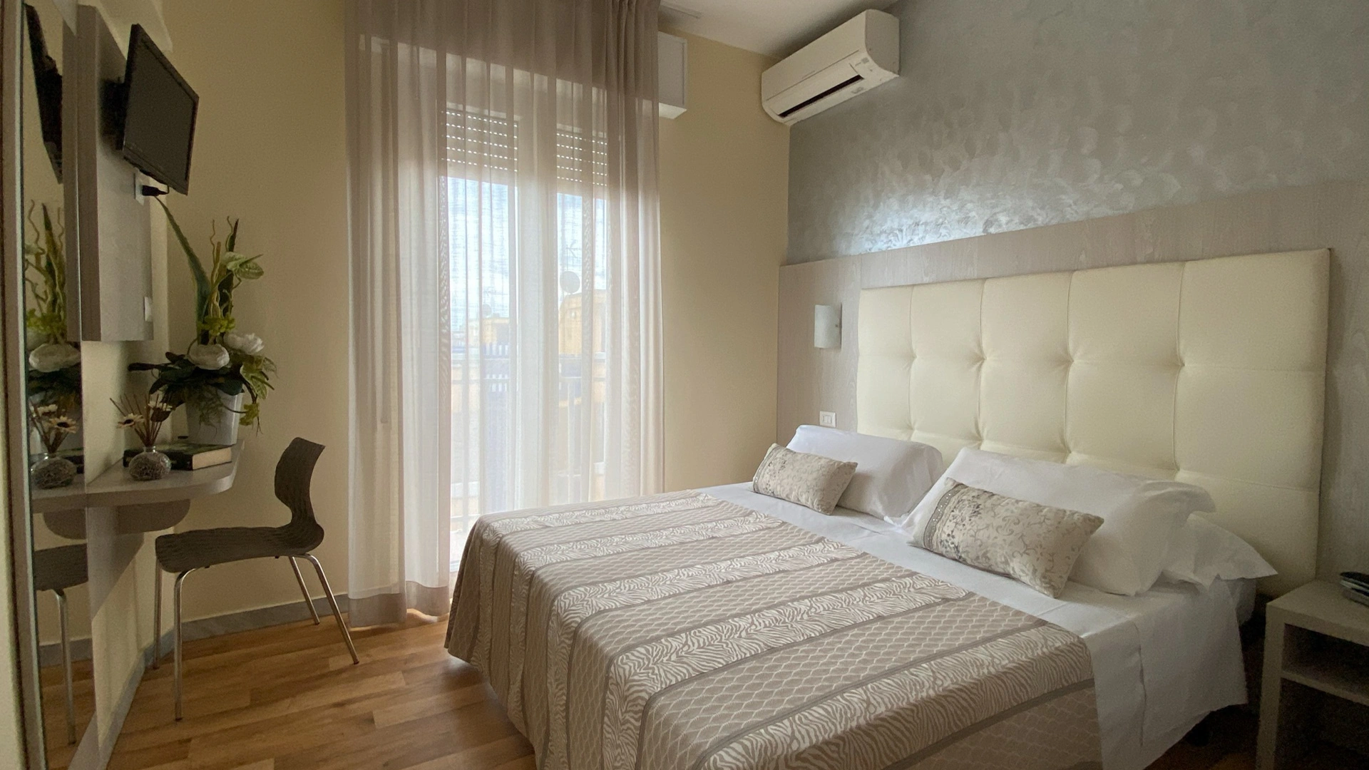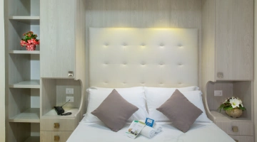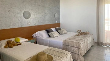 Die Zimmer verfügen über einen Balkon, Meerblick, individuell regulierbare Klimaanlage, 22-Zoll-LED-Fernseher mit digitalen terrestrischen Kanälen, digitalen Safe, Direktwahltelefon mit Wecker und Wi-Fi-Glasfaser-Internetverbindung. Auf Anfrage sind die folgenden gegen eine geringe Gebühr erhältlich Aufpreis: Zeitung, Zeitschriften, Minikühlschrank und Bademantel.