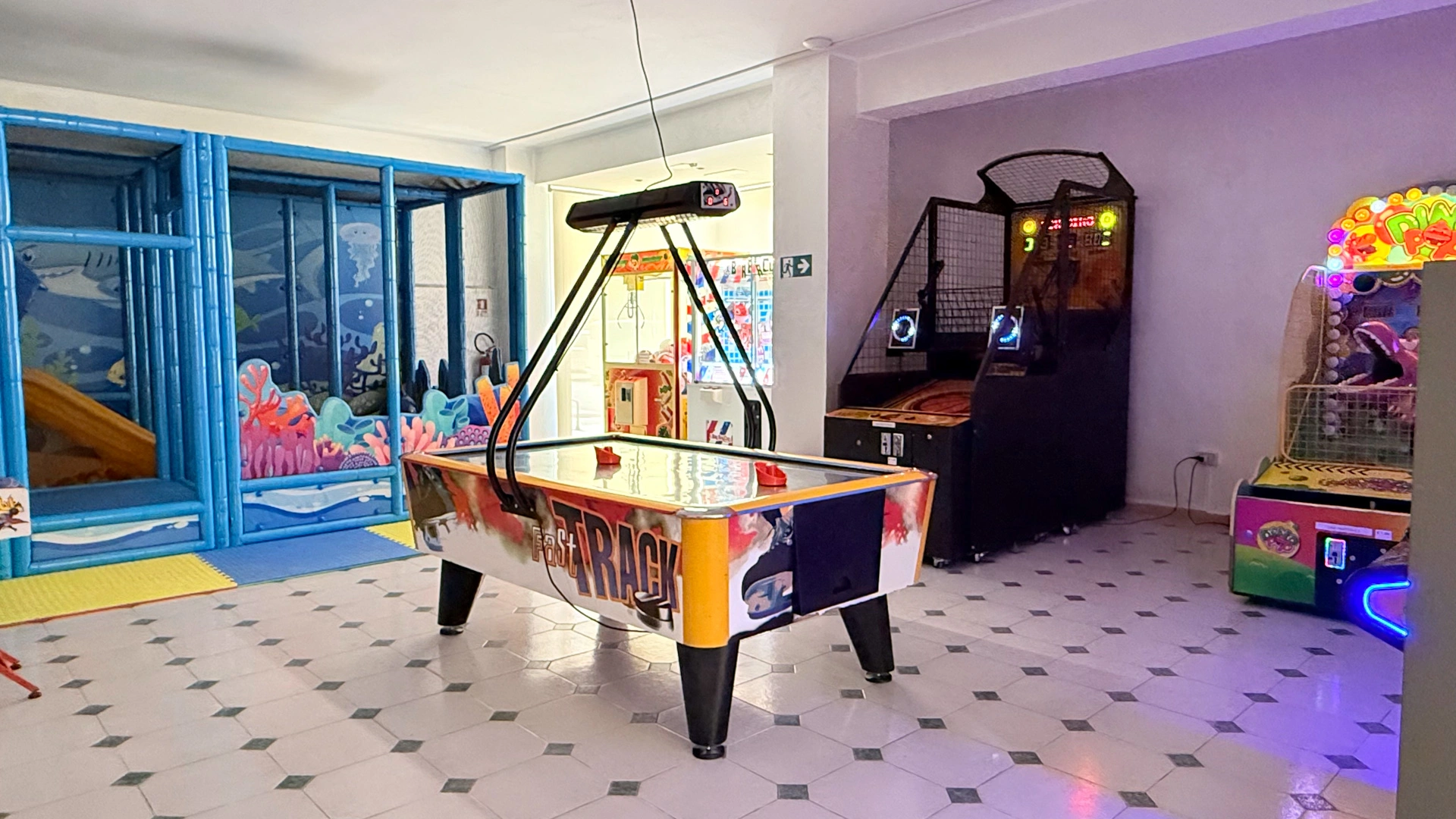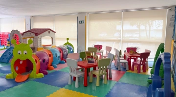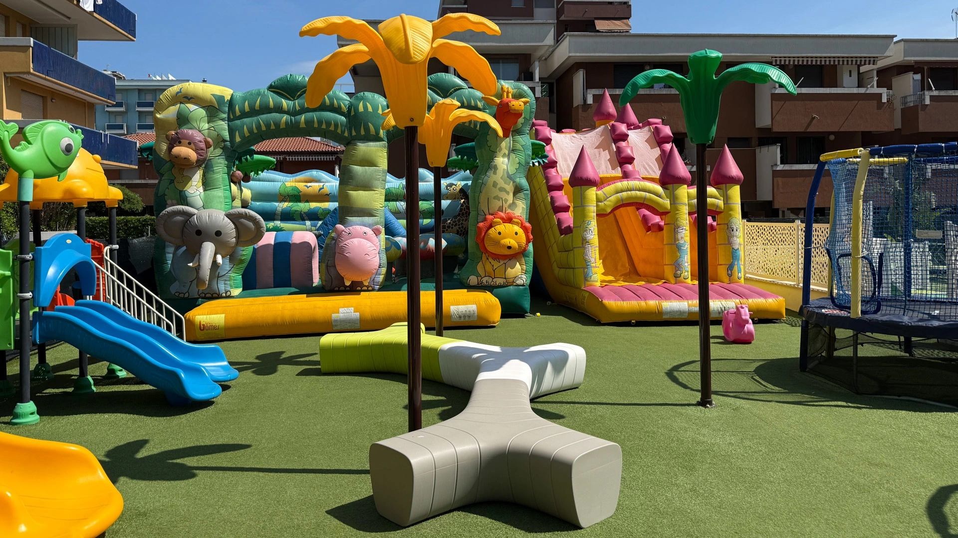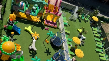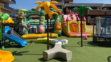 Im Hotel: Kinderbecken, Baby-/Mini-/Juniorclub, Unterhaltung (Sportturniere, Bogenschießen), Innen- und Außenspielplatz mit Schlössern und Schaukeln, Jumbo Jungle Park aus Kunstrasen mit Hüpfburgen, Trampolin, Wanne mit Bällen, Videothek, Spielzimmer mit Karambole und Tischfußball, Kinderwagen, Fahrräder mit Kindersitzen, Nachmittagsjause am Pool.