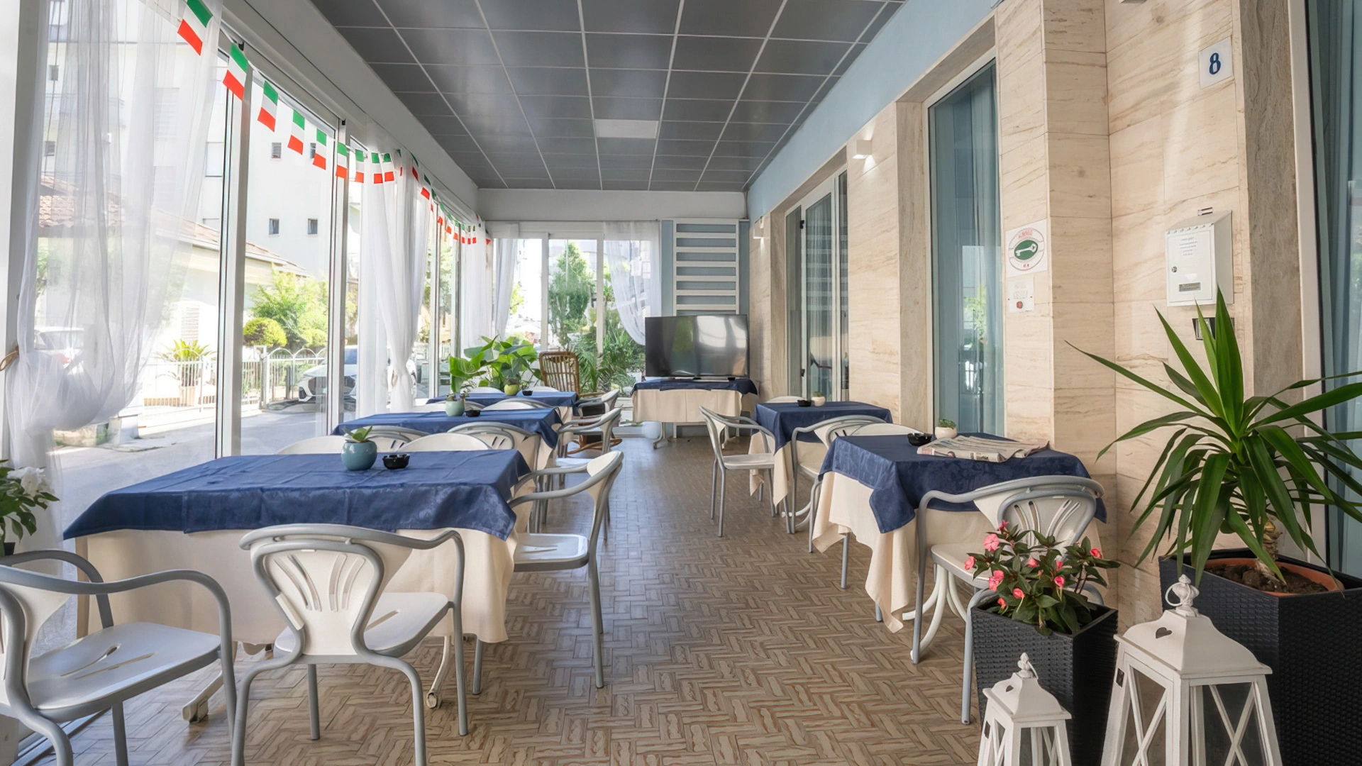 Veranda, Leseraum, Aufzug, Themenabende, später Check-out nach Verfügbarkeit.
