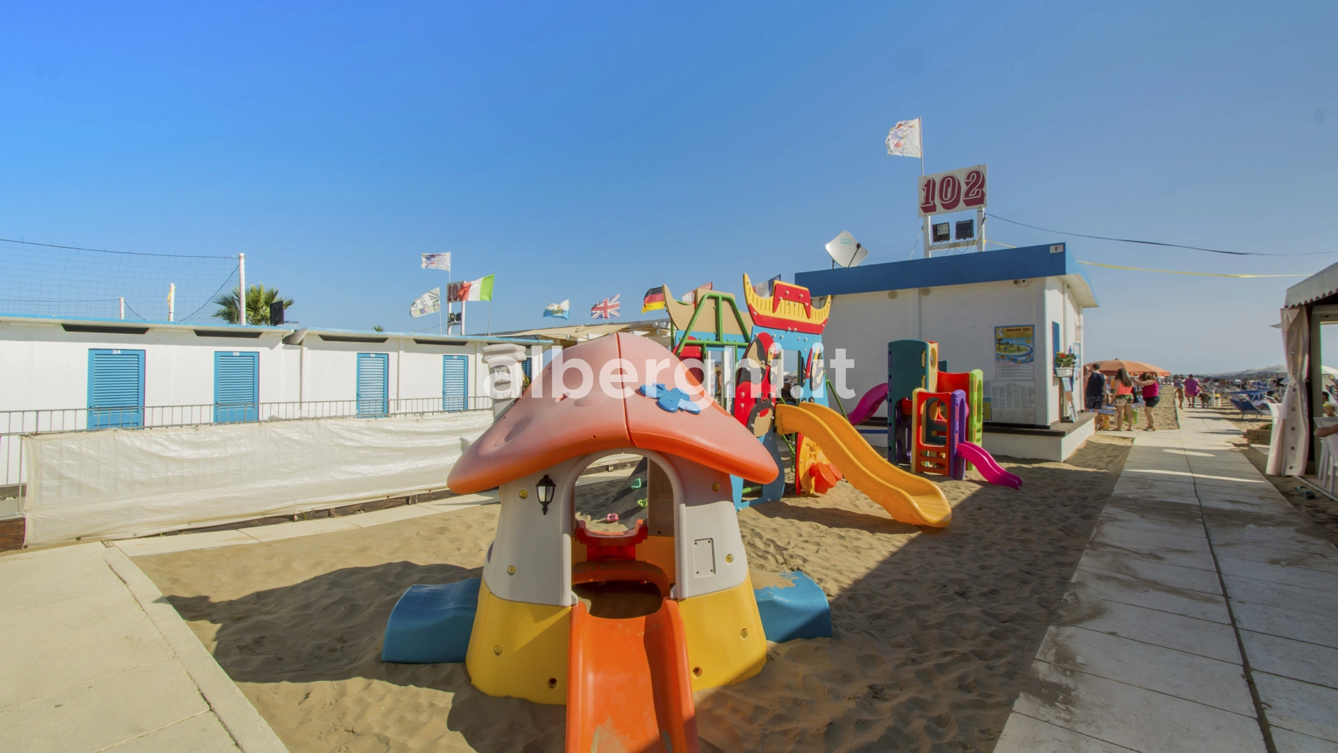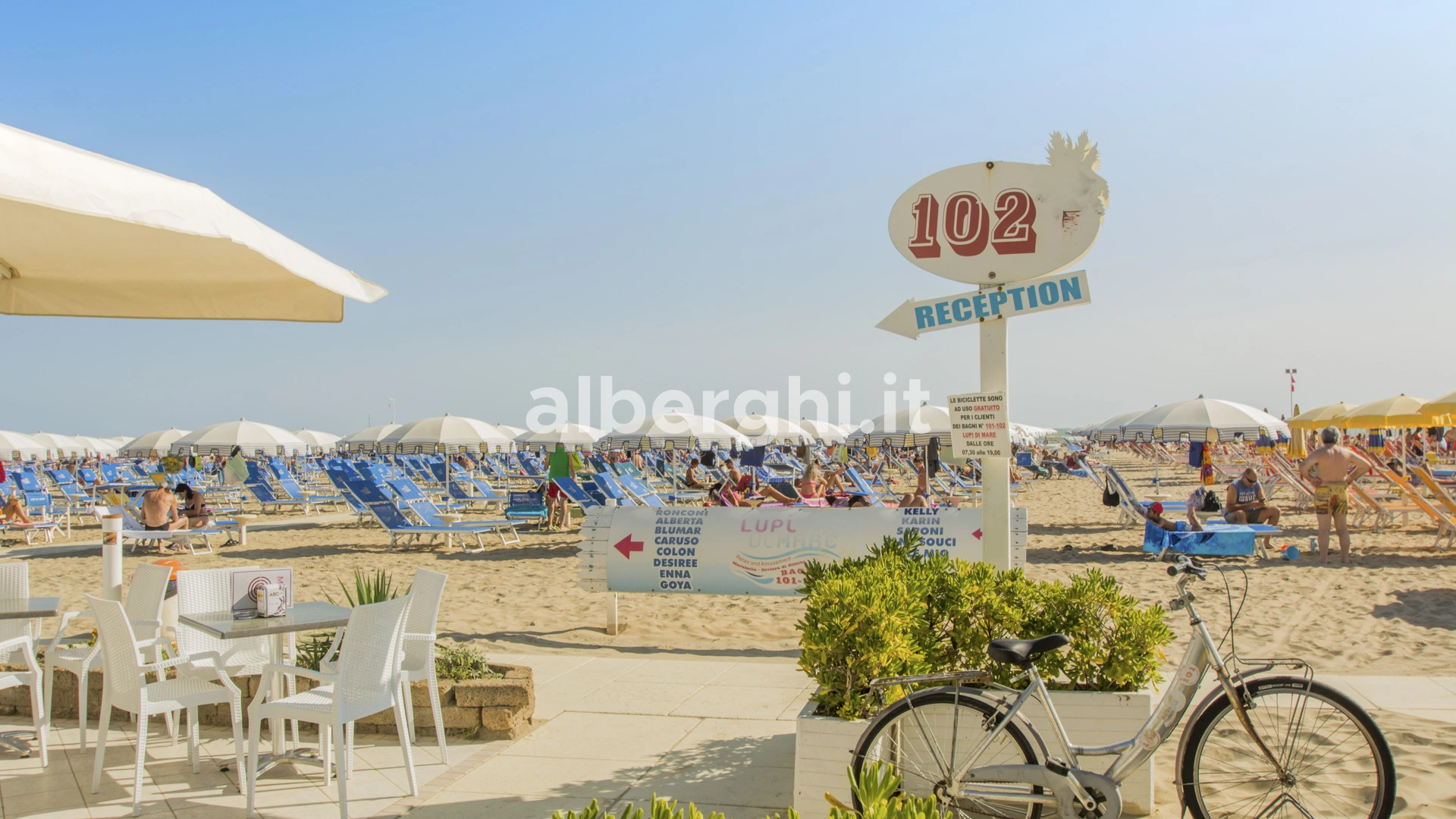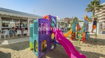Das Hotel hat eine Sondervereinbarung mit dem Strand Bradipo (Strand Nr. 102), der über Beachvolleyball- und Beachsoccer-Plätze, einen Kinderspielplatz, einen Miniclub, einen Bereich für Haustiere, eine Bar und ein Restaurant verfügt.