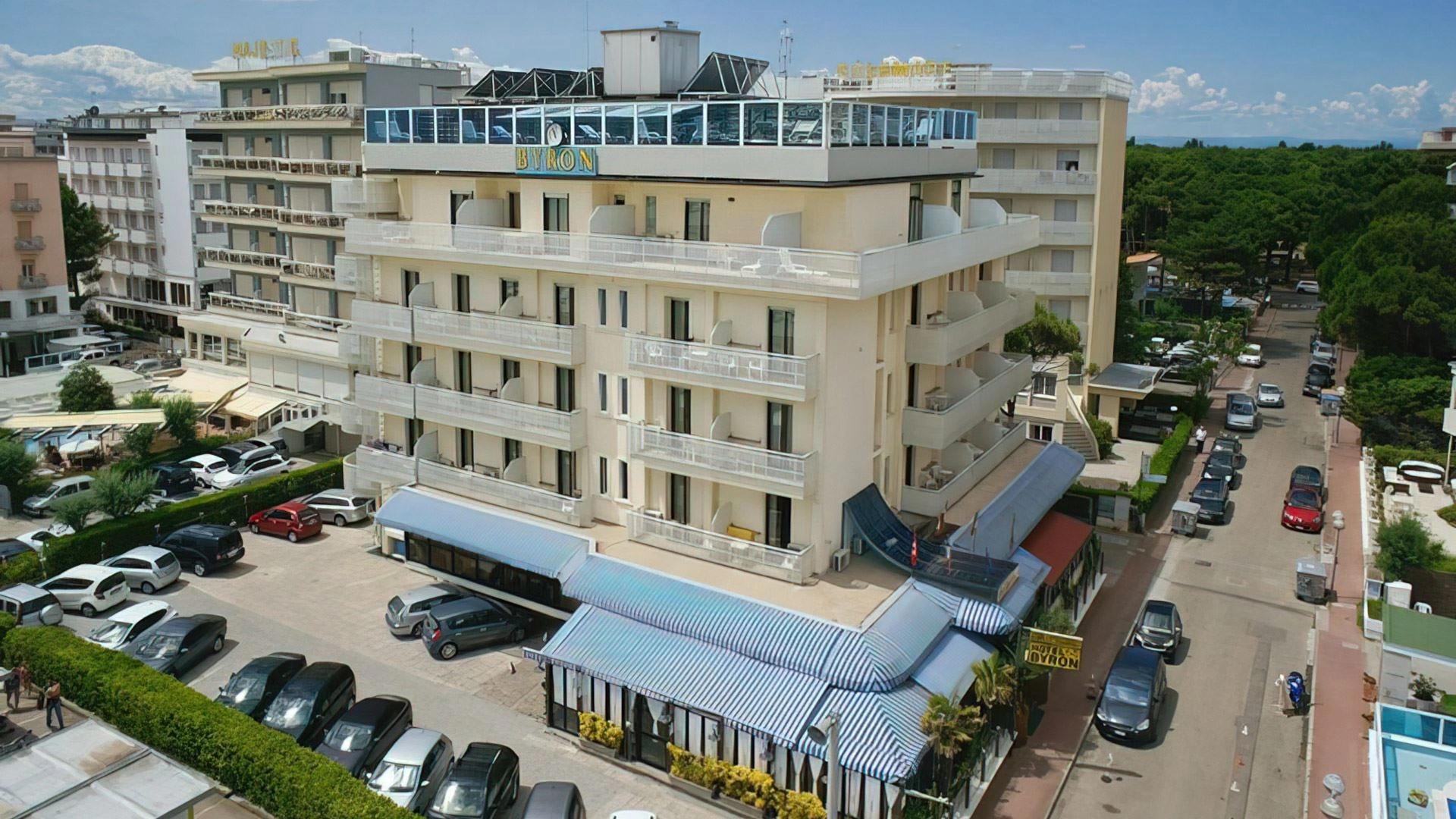 Das Hotel Byron ist ein 3-Sterne-Superior-Hotel in Milano Marittima, ganz in der Nähe des Meeres. Es verfügt über Parkplätze, Garage, schnelle WLAN-Verbindung und eine 250 m2 große Terrasse mit Swimmingpool, Solarium, Sauna und Massageecke. Kleine Haustiere sind kostenfrei gestattet.