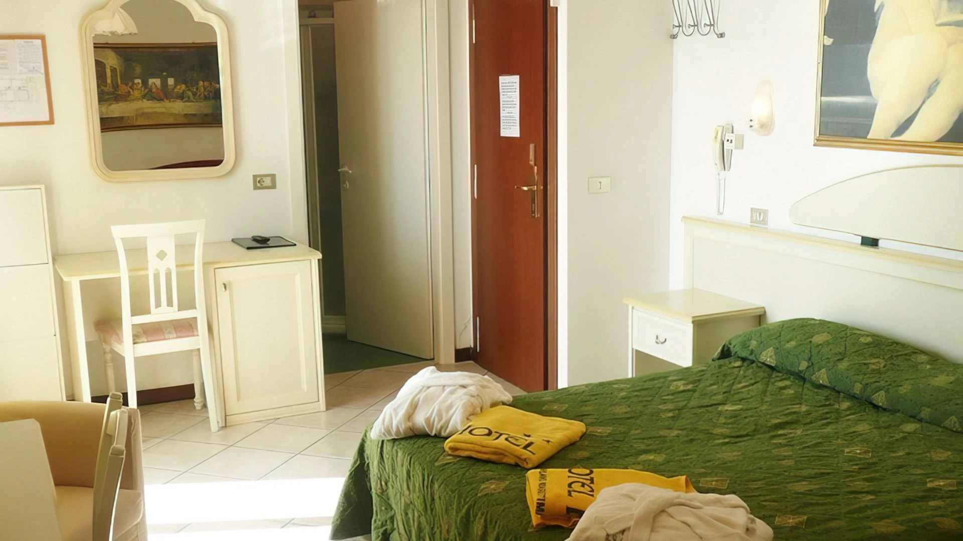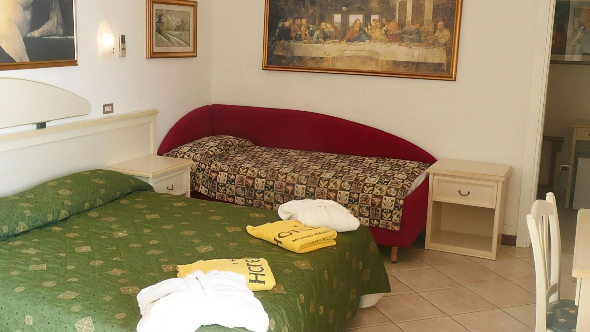 Die Zimmer sind mit einem Balkon (auch mit Meerblick) oder einer ausgestatteten Terrasse, Klimaanlage, Heizung, Luftentfeuchter (alle unabhängig), 32-Zoll-LCD-TV, Glasfaser-WLAN, Safe, Telefon, Minibar und eigenem Bad mit Glasduschkabine ausgestattet (klassische und Hydrojet-Dusche), Haartrockner, Vergrößerungsspiegel, Pflegeset, Bademäntel, Hausschuhe, Nähzeug.