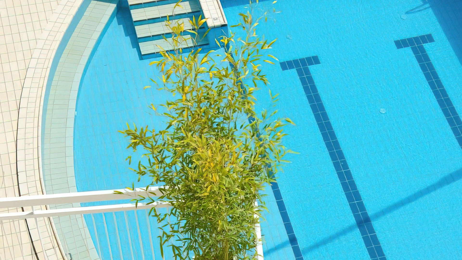 kostenpflichtig - sich vor der Abreise am Pool entspannen