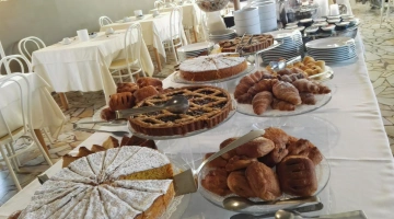 FRÜHSTÜCK: süßes und herzhaftes Buffet, Kaffeespezialitäten werden am Tisch serviert.