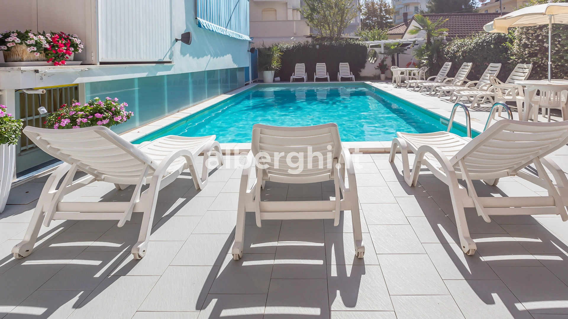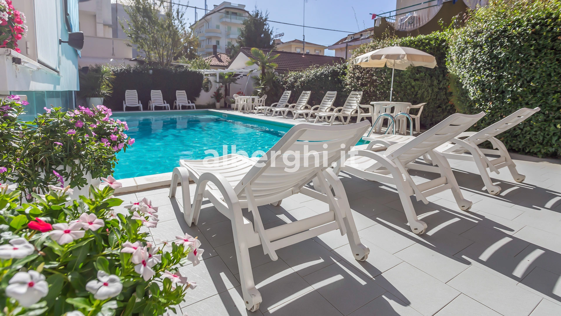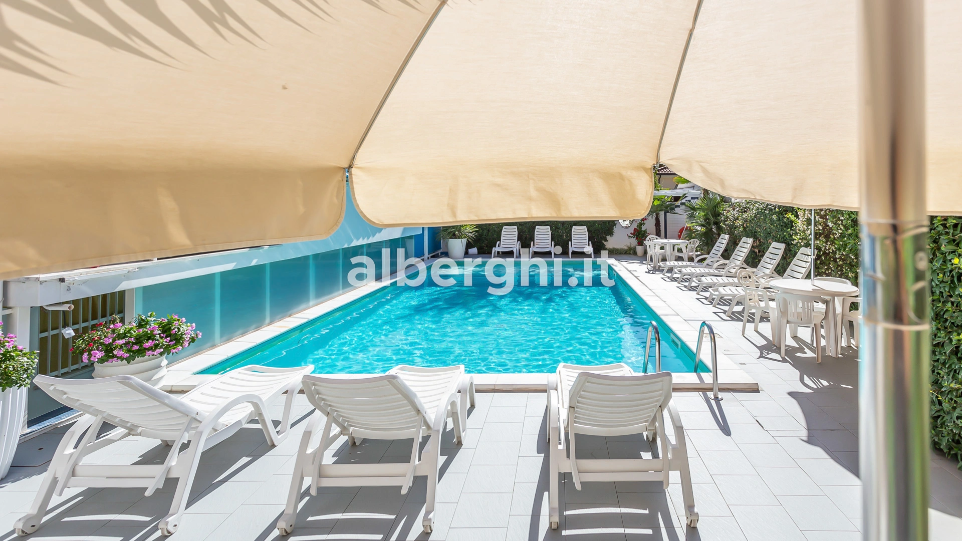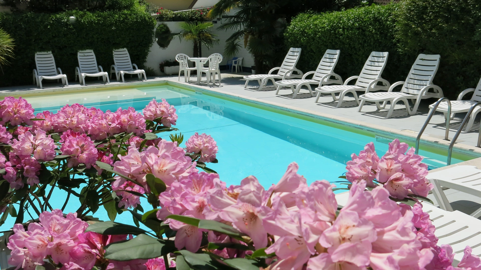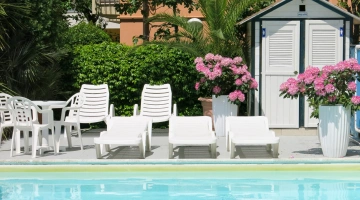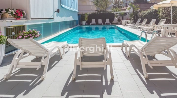 Der Hotelpool befindet sich im Garten und ist mit beheiztem Wasser und Hydromassage ausgestattet. Er ist ideal für Erwachsene und Kinder, für die ein Flachwasserbereich reserviert ist. Der Pool ist von einem Solariumbereich mit Sonnenliegen umgeben.