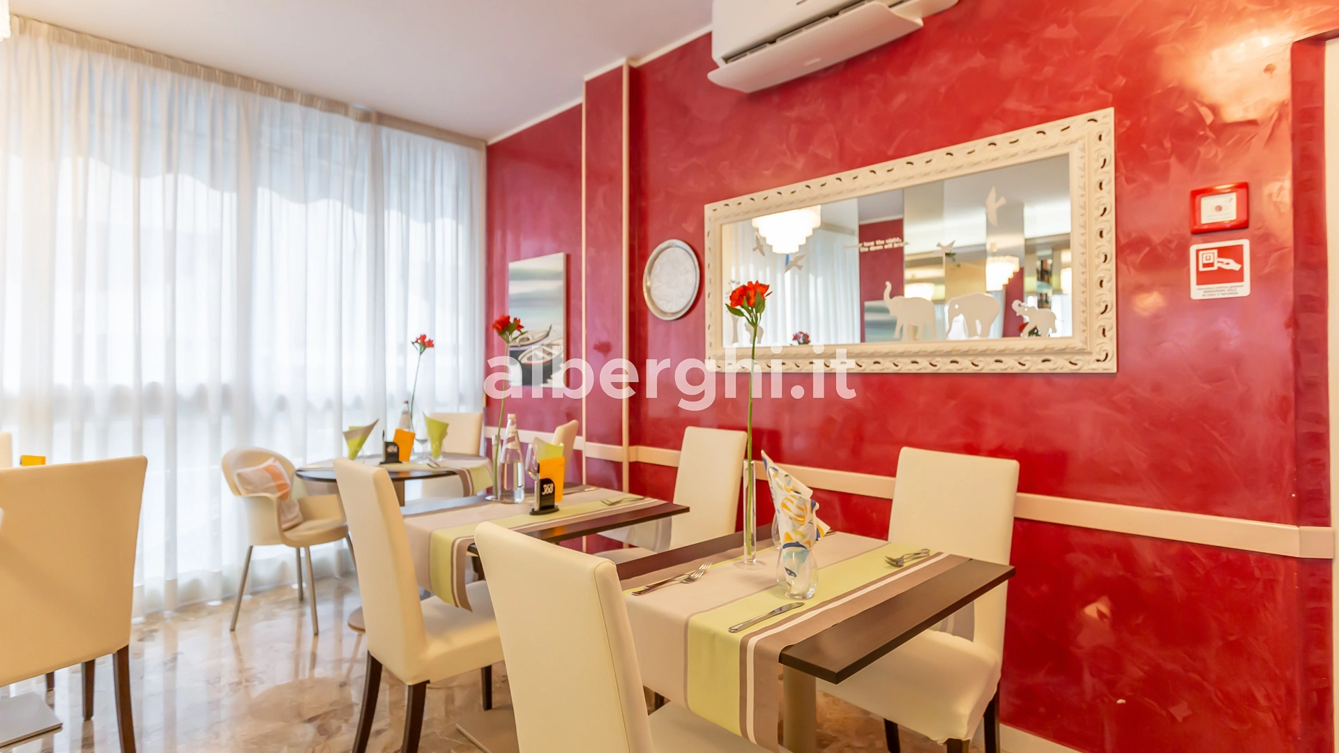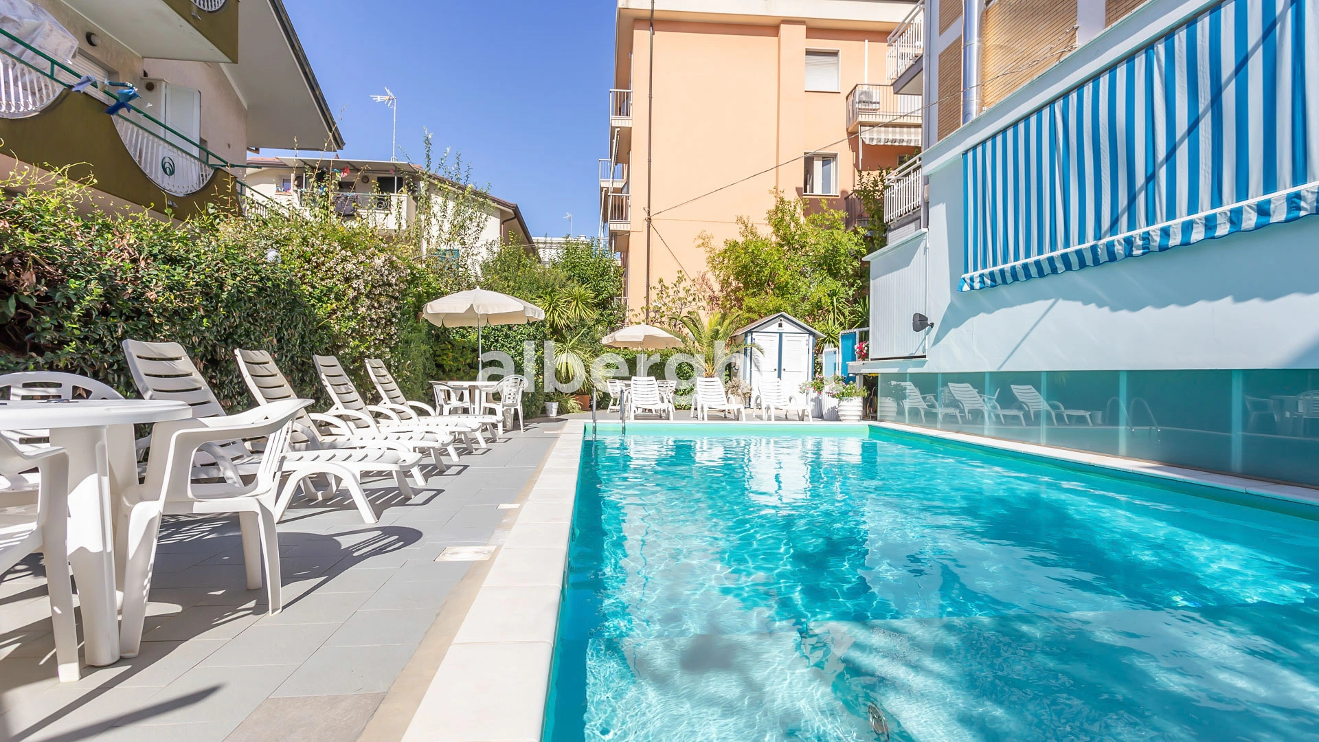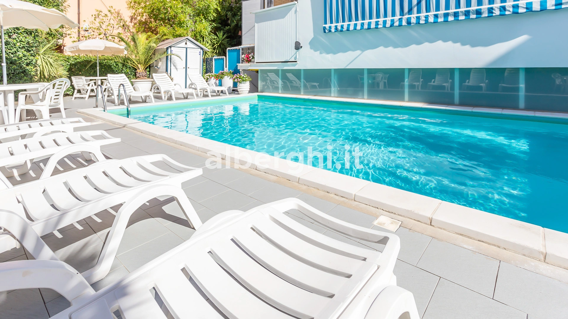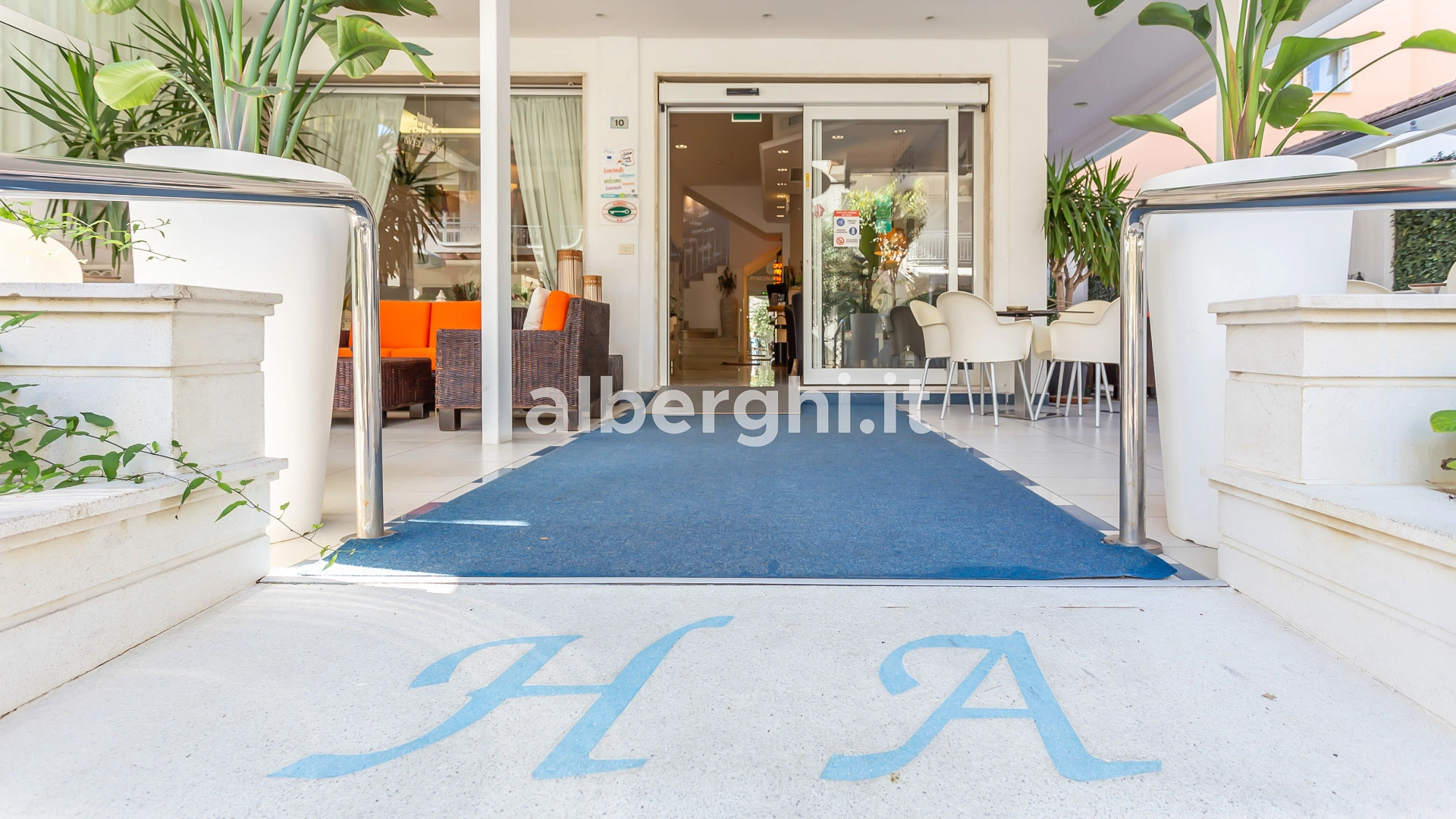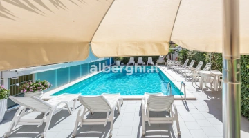 Das Hotel liegt in Riccione in einer grünen Gegend, nur wenige Gehminuten vom Strand und dem Riccione Spa entfernt, mit dem es eine Vereinbarung getroffen hat. Das Gebiet ist mit öffentlichen Verkehrsmitteln gut an Rimini und das Zentrum von Riccione angebunden.