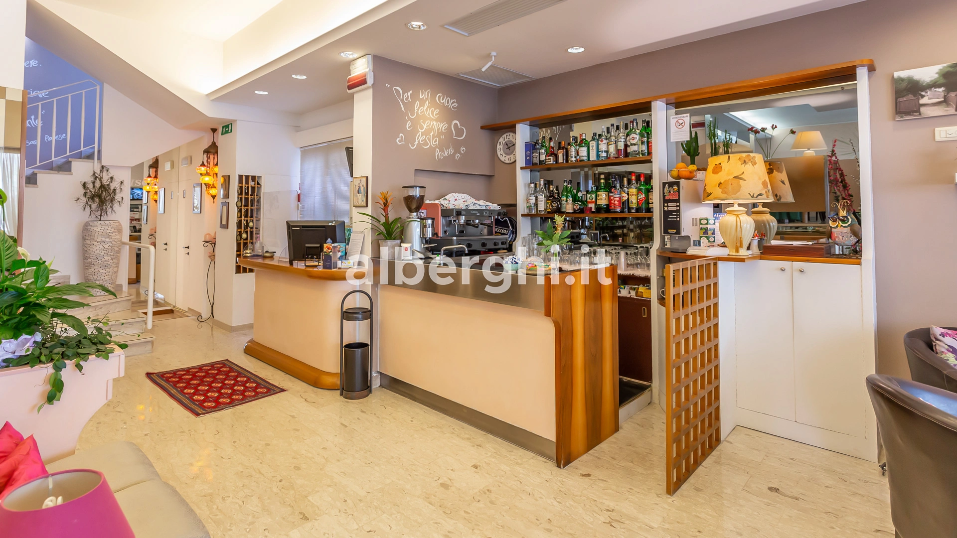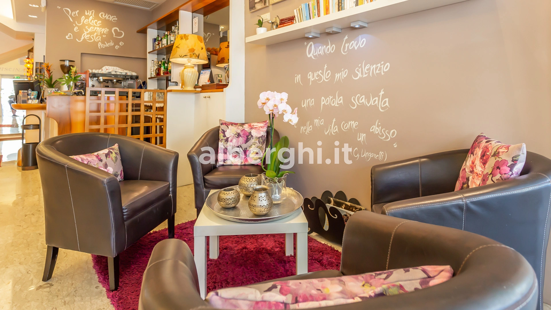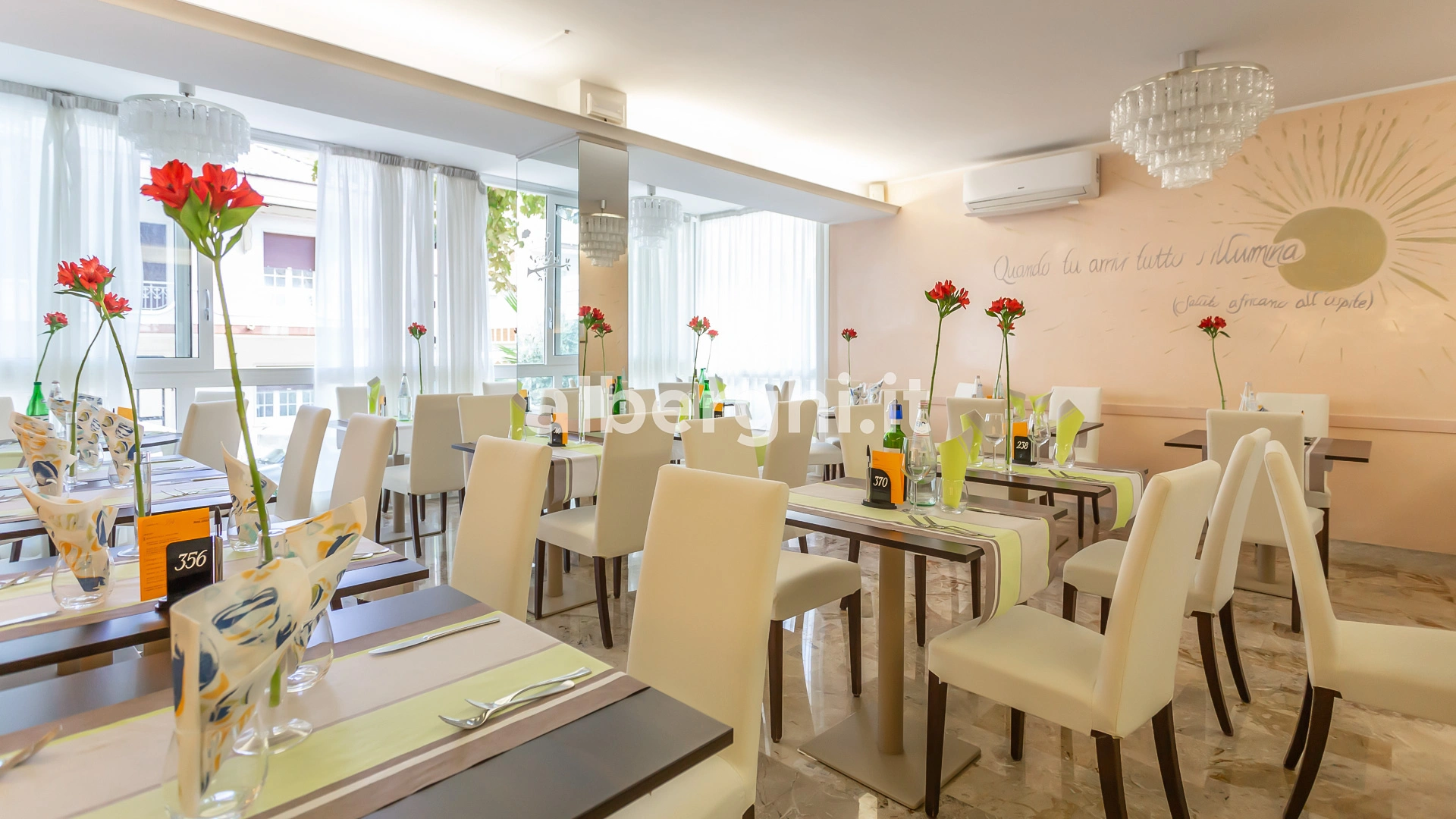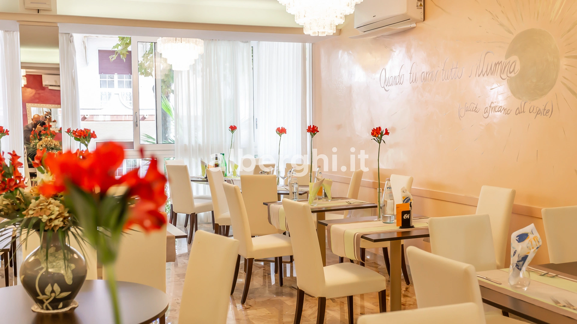 Das Hotel liegt in Riccione in einer grünen Gegend, nur wenige Gehminuten vom Strand und dem Riccione Spa entfernt, mit dem es eine Vereinbarung getroffen hat. Das Gebiet ist mit öffentlichen Verkehrsmitteln gut an Rimini und das Zentrum von Riccione angebunden.