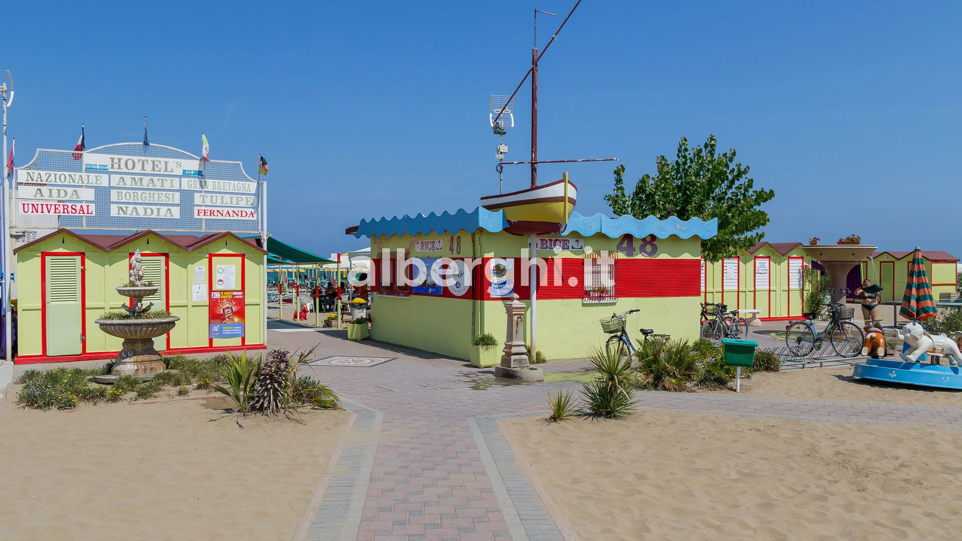 Das Hotel hat eine Vereinbarung mit den Einrichtungen Nr. 46-47, Nr. 48 und Nr. 50, die mit der Vermietung von Sonnenschirmen, Sonnenliegen und Zelten, Spielplätzen, Schwimmbad, Sportplätzen und Unterhaltung für Erwachsene und Kinder ausgestattet sind.