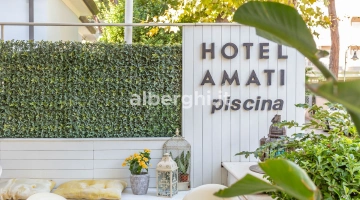 Das Amati Hotel, ein familiengeführtes 2-Sterne-Hotel in Riccione, liegt in einer grünen Gegend in der Nähe des Meeres und des Spas. Es ist ideal für Familien und verfügt über einen Swimmingpool, Hydromassage, sichere Parkplätze, Dienstleistungen für Kinder und kostenloses, schnelles WLAN im gesamten Hotel. Akzeptiert kleine Haustiere.
