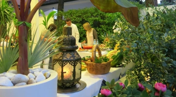 MITTAG- UND ABENDESSEN: 3 Wahlmenüs, gefolgt von einem Buffet mit Vorspeisen und frischem Gemüse, Obst und selbst zubereiteten Desserts.