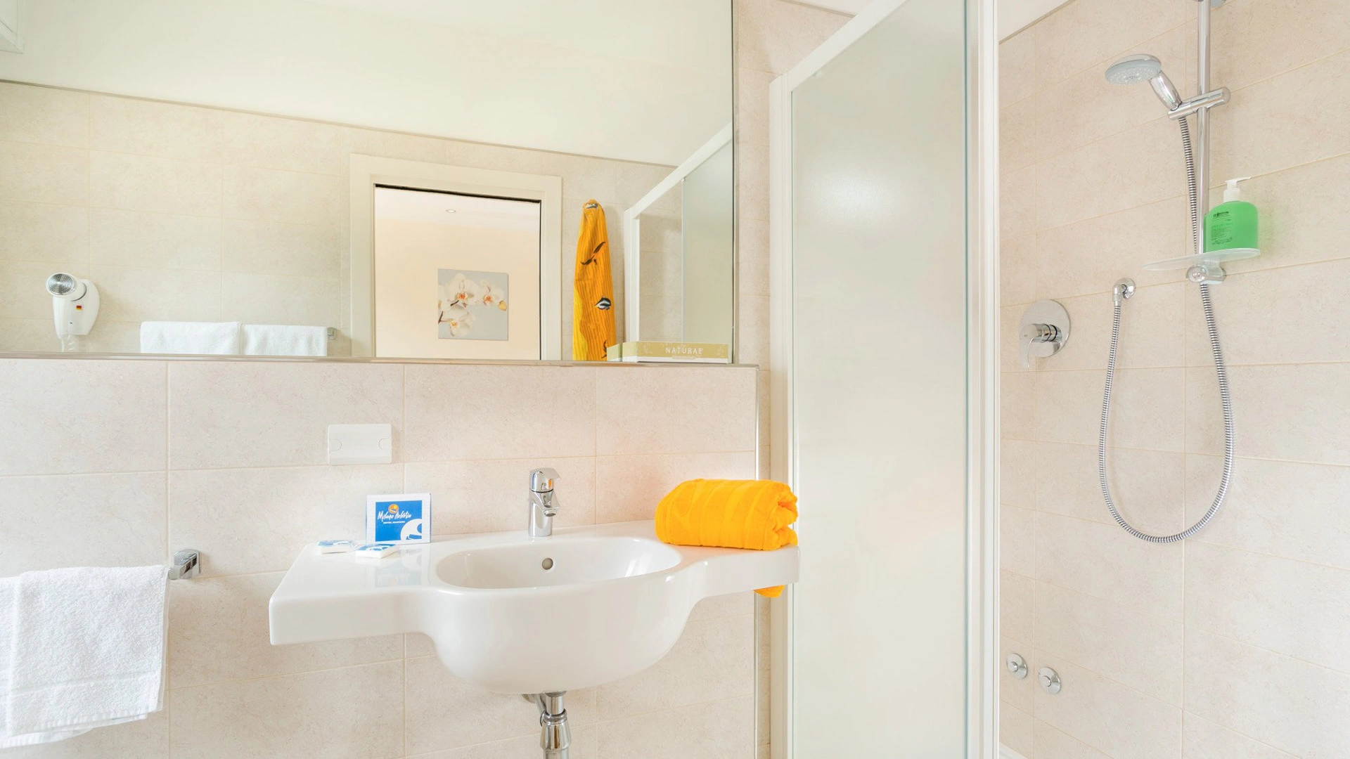 SILVER NEW: im Anbau mit Dusche, Minibar und 43-Zoll-LCD-Fernseher.