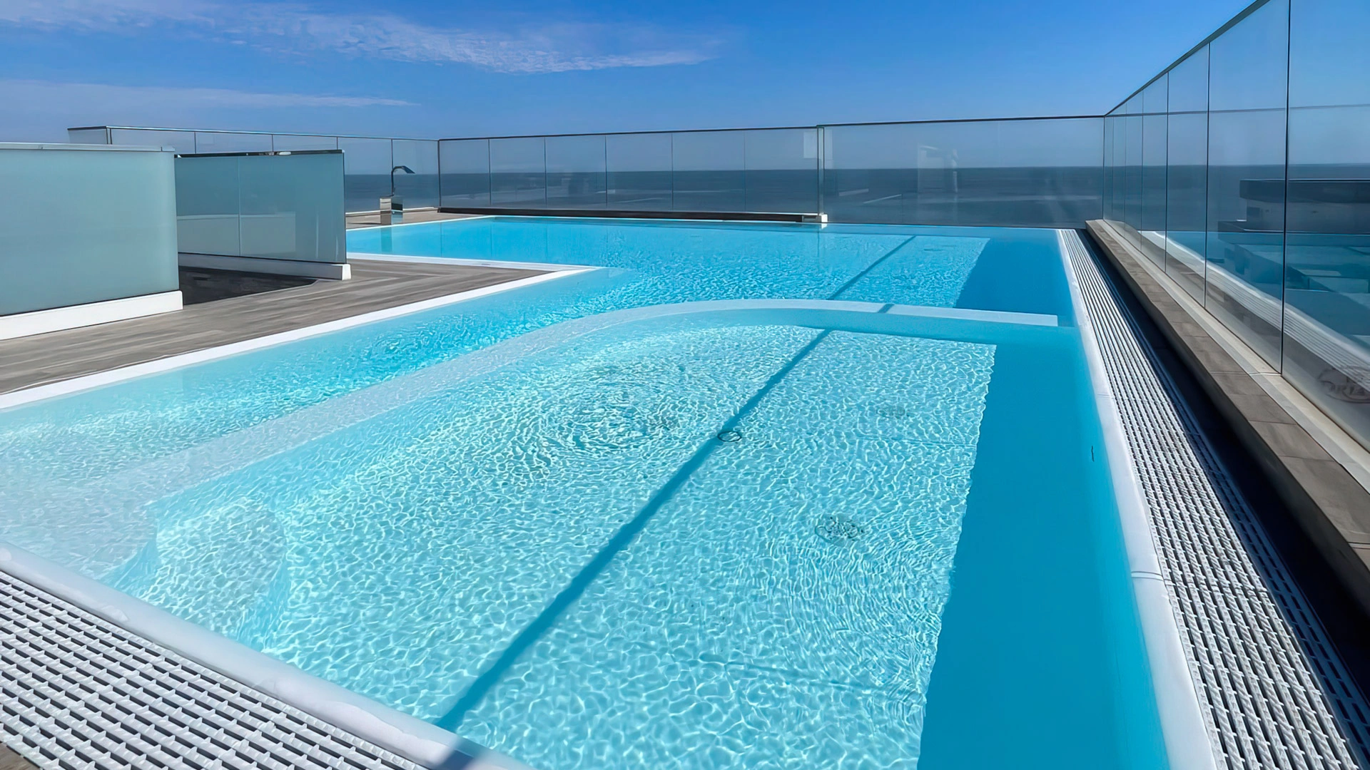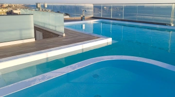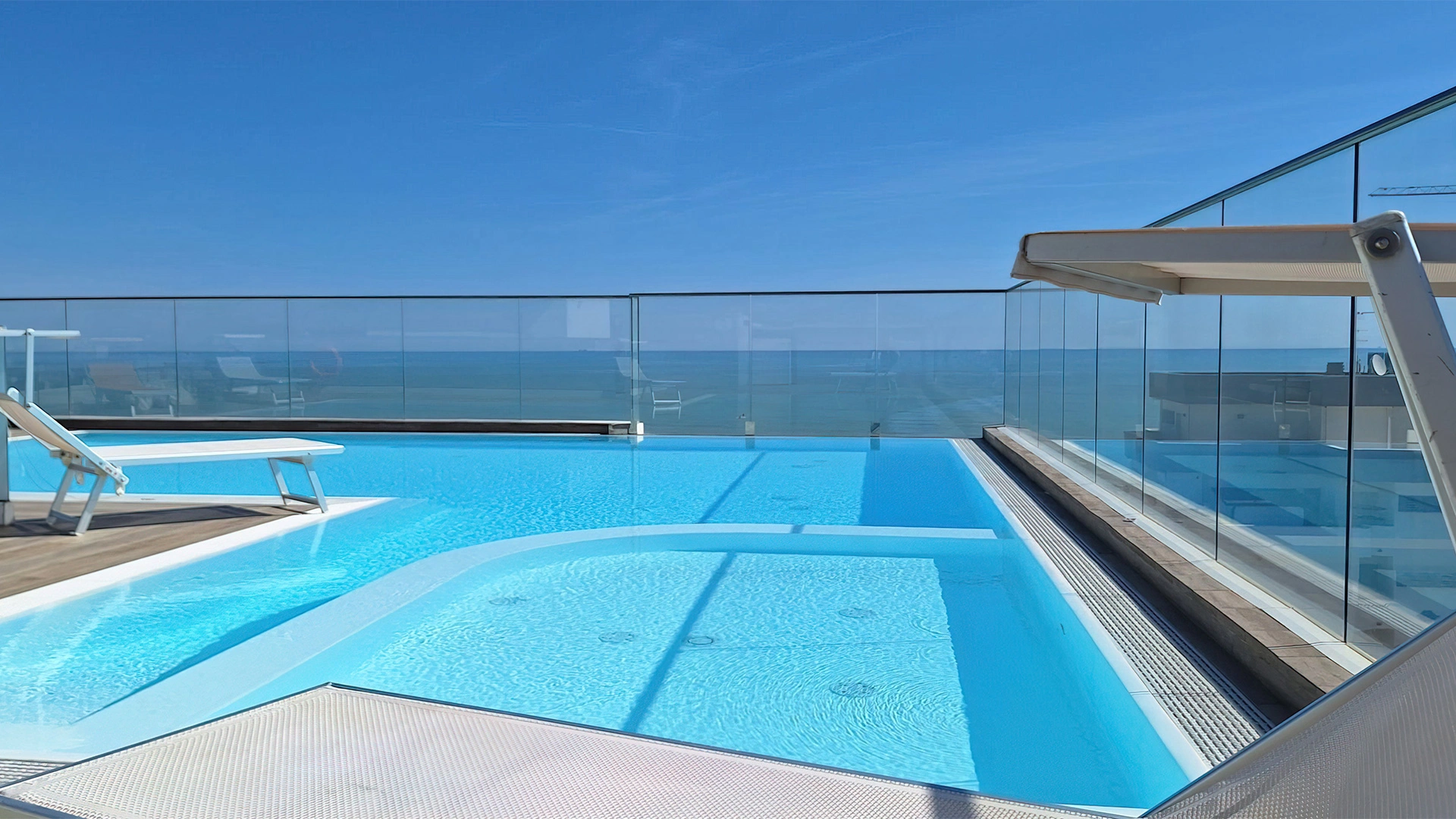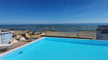 Das Anwesen verfügt über einen Panoramapool mit variabler Tiefe (bis maximal 1,25 m). Er befindet sich auf dem Dach und ist mit einem Whirlpool, Sprudeldüsen und einem Wasserfall ausgestattet. Ein möblierter Sonnenbereich umgibt den Pool.