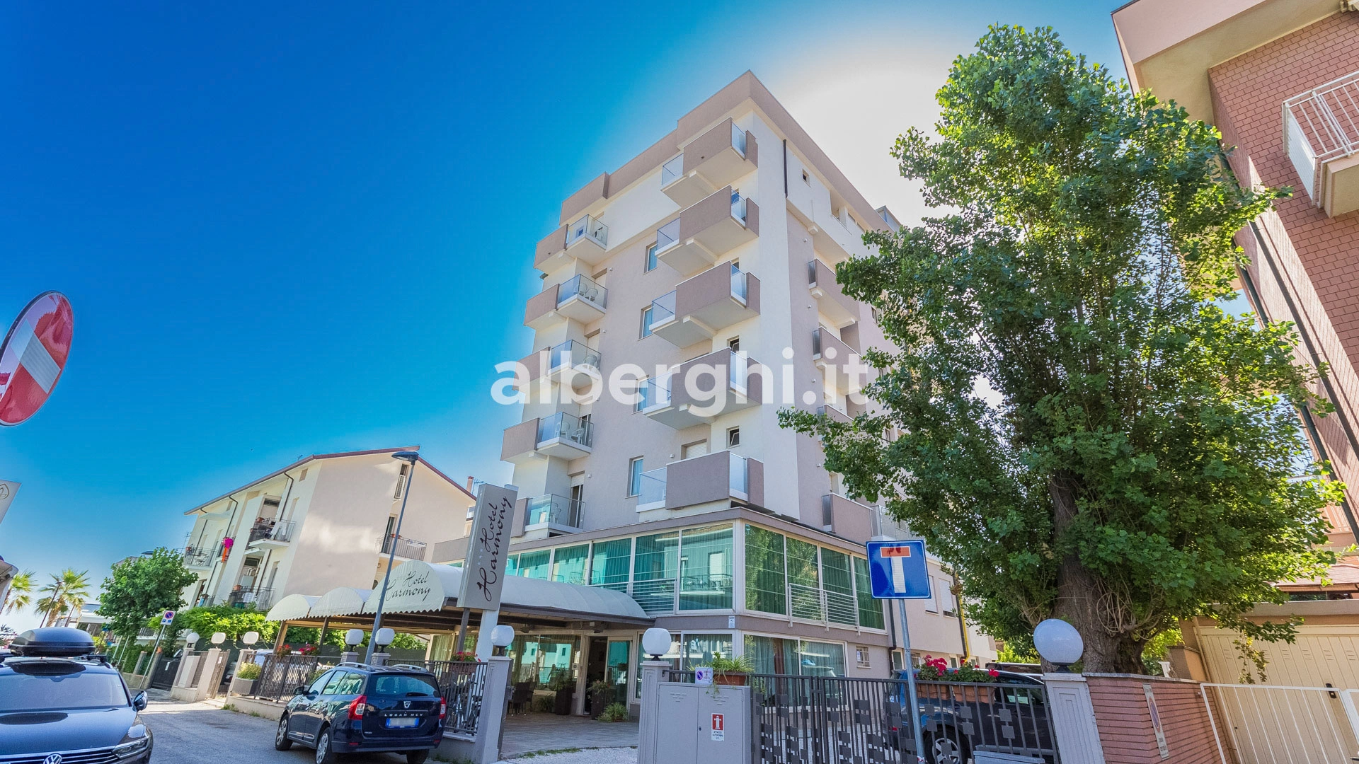 Das Hotel befindet sich in Rivabella, einem Weiler im Norden von Rimini, der mit der Buslinie Nr. 4 gut mit dem Zentrum verbunden ist. Das Anwesen liegt nur wenige Schritte von der Strandpromenade und etwa eine Gehminute vom Strand entfernt.