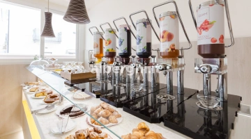 ABENDESSEN: Das Abendessen im Hotel umfasst eine Haus-Vorspeise, eine Auswahl an Vor- und Hauptgerichten, Dessert und Obst. Stilles und kohlensäurehaltiges Wasser sind zu den Mahlzeiten inklusive. Von Juni bis September wird außerdem ein leichtes Mittagsmenü am Pool angeboten.