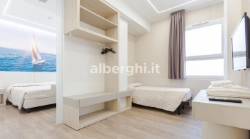 PRESTIGE SUITE: im modernen Stil und groß, ideal für Aufenthalte mit maximalem Komfort. Verfügbar in Doppel-, Dreibett- und Vierbettzimmern.