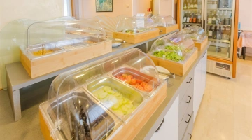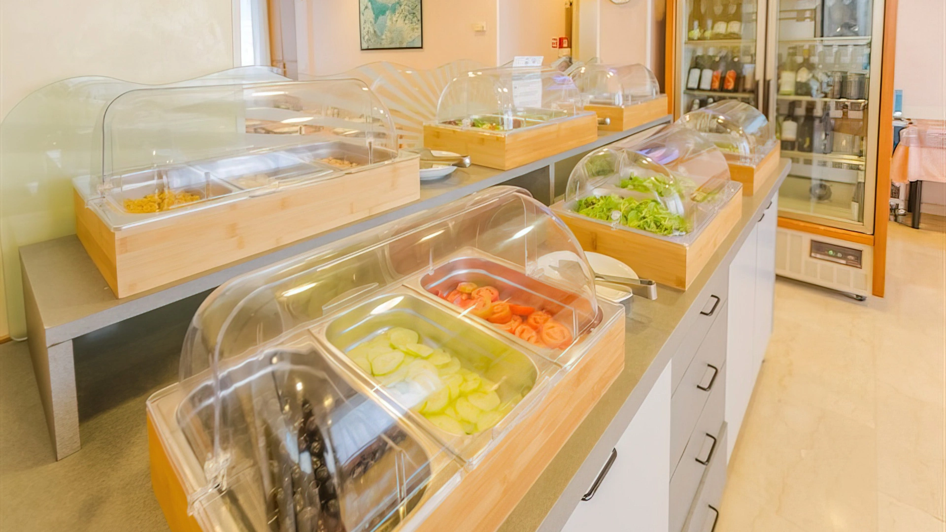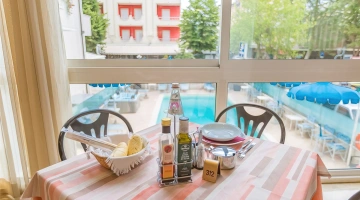 MITTAG- UND ABENDESSEN: Menü mit 3 oder mehr Auswahlmöglichkeiten mit romagnolischen und internationalen Rezepten. Nach den Mahlzeiten gibt es ein Buffet mit Gemüse und Vorspeisen, frischem Obst und Eis.