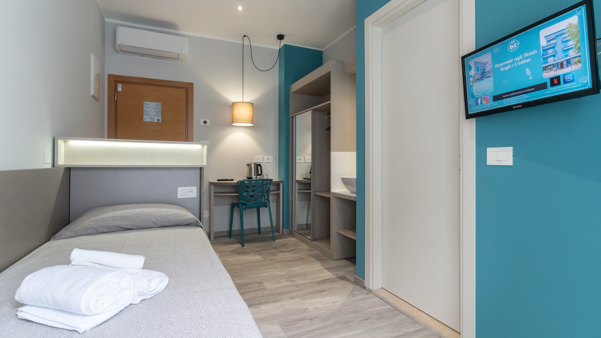 Die Zimmer sind mit Balkon, Klimaanlage, 100 Mbit/s Glasfaser-WLAN, Sat-TV, Safe, Telefon, Badezimmer mit Duschkabine und Haartrockner ausgestattet. Minibar auf Anfrage.