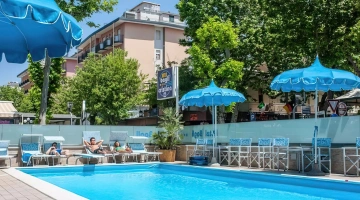 Das Hotel liegt in der Nähe der Küste und des Strandes von Rivazzurra, einem südlichen Weiler von Rimini. Die Stadt liegt auf halber Strecke zwischen Rimini und Riccione und ist dank der Buslinie Nr. 11 gut mit beiden Orten verbunden.