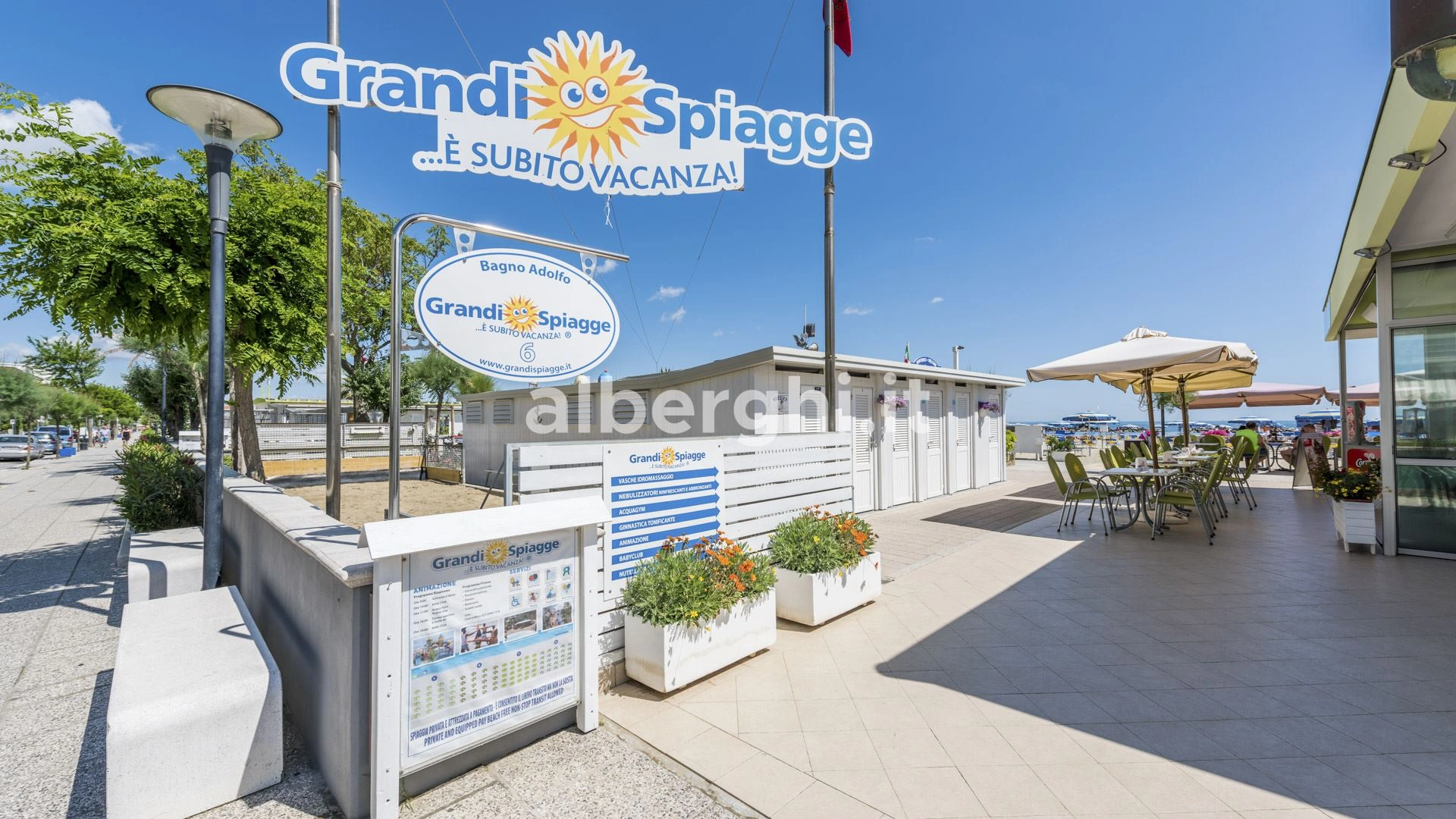 Das Hotel hat Kooperationsvereinbarungen mit mehreren Strandclubs, darunter Spiaggia Guerrino e Gino (im All-Inclusive-Paket enthalten) und „Le Grandi Spiagge“, ein moderner Strandclub mit Kinderkrippe, Kinderspielplatz, Beachvolleyballfeldern, Bocciabahn, Tischtennisplatten, Animationsprogramm, barrierefreien Einrichtungen und einem haustierfreundlichen Bereich (gegen Gebühr, Reservierung erforderlich). Sie können Ihren Wunschstrand bei der Buchung angeben! Falls Sie keine Angabe machen, wird Ihnen der Sonnenschirm gemäß der Standardvereinbarung mit Bagno Guerrino e Gino zugewiesen.
