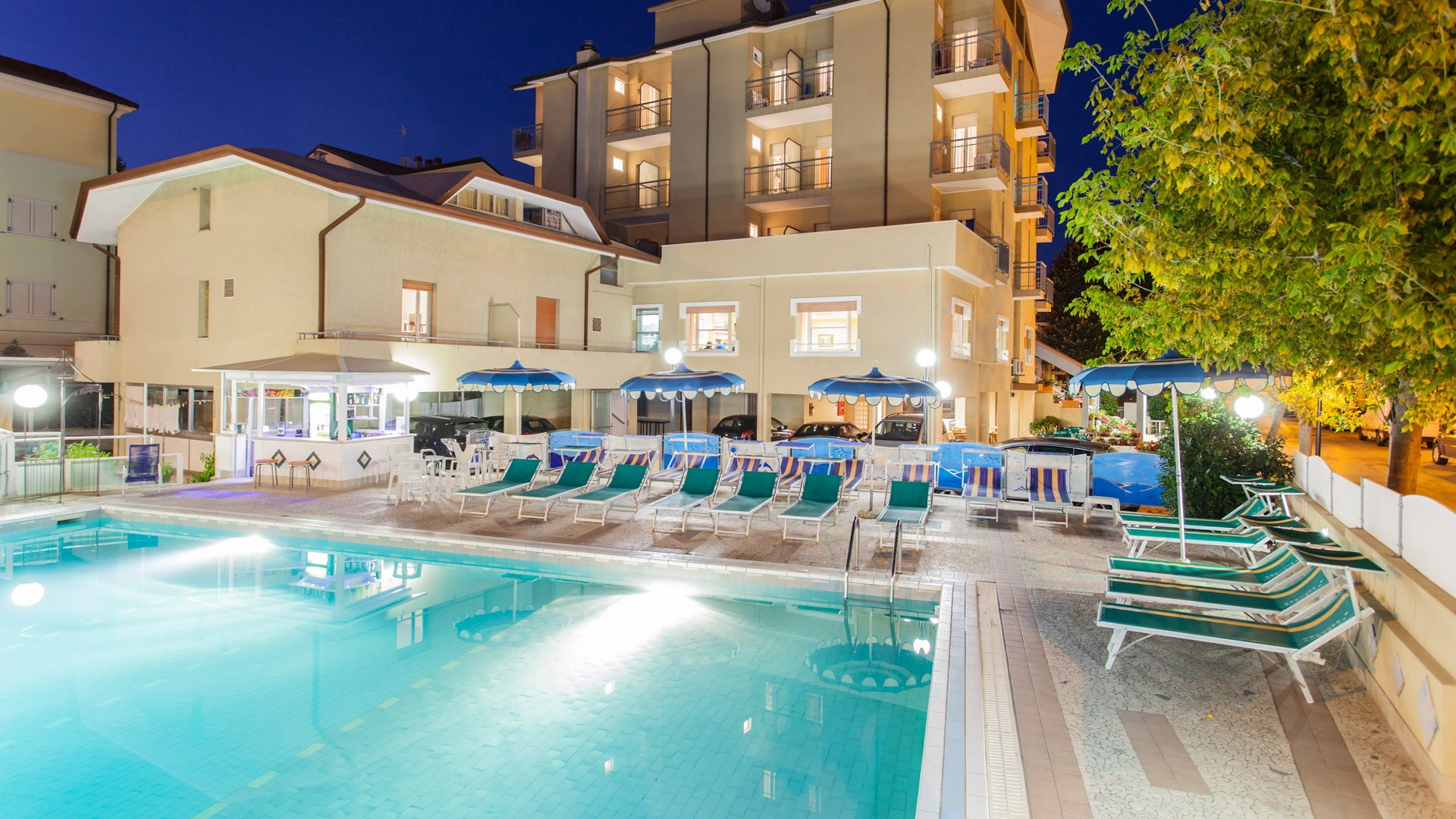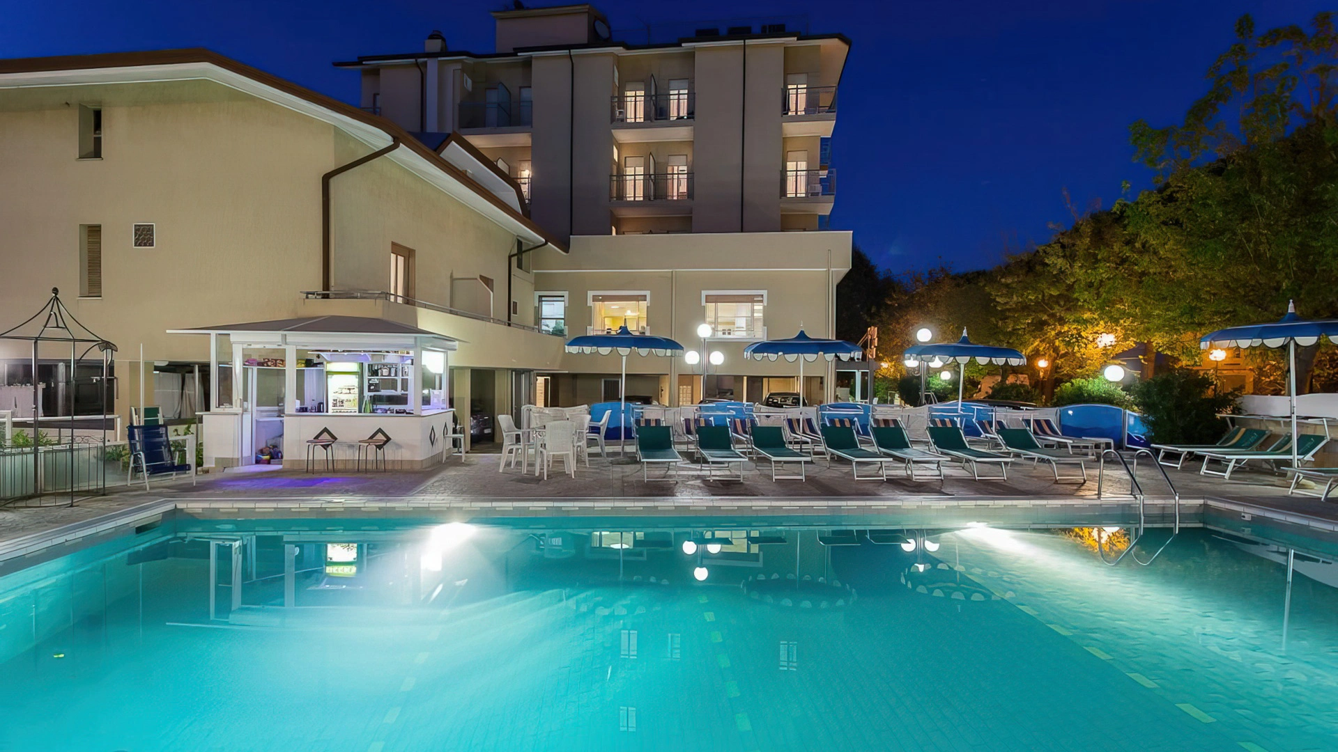 Das Hotel verfügt über einen beheizten Swimmingpool mit einem Solariumbereich, der mit Liegestühlen ausgestattet ist und die Möglichkeit bietet, einen Aperitif am Pool zu genießen. Das Schwimmbad ist mit einem Sprungbrett und einer Ecke mit Wanne für Kinder ausgestattet.