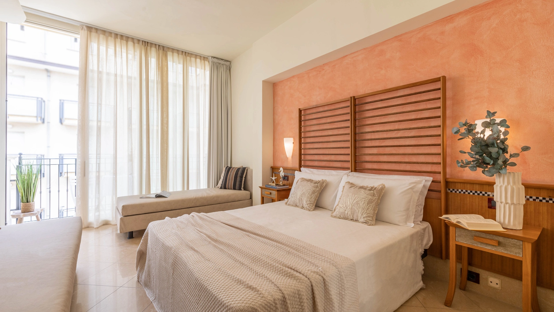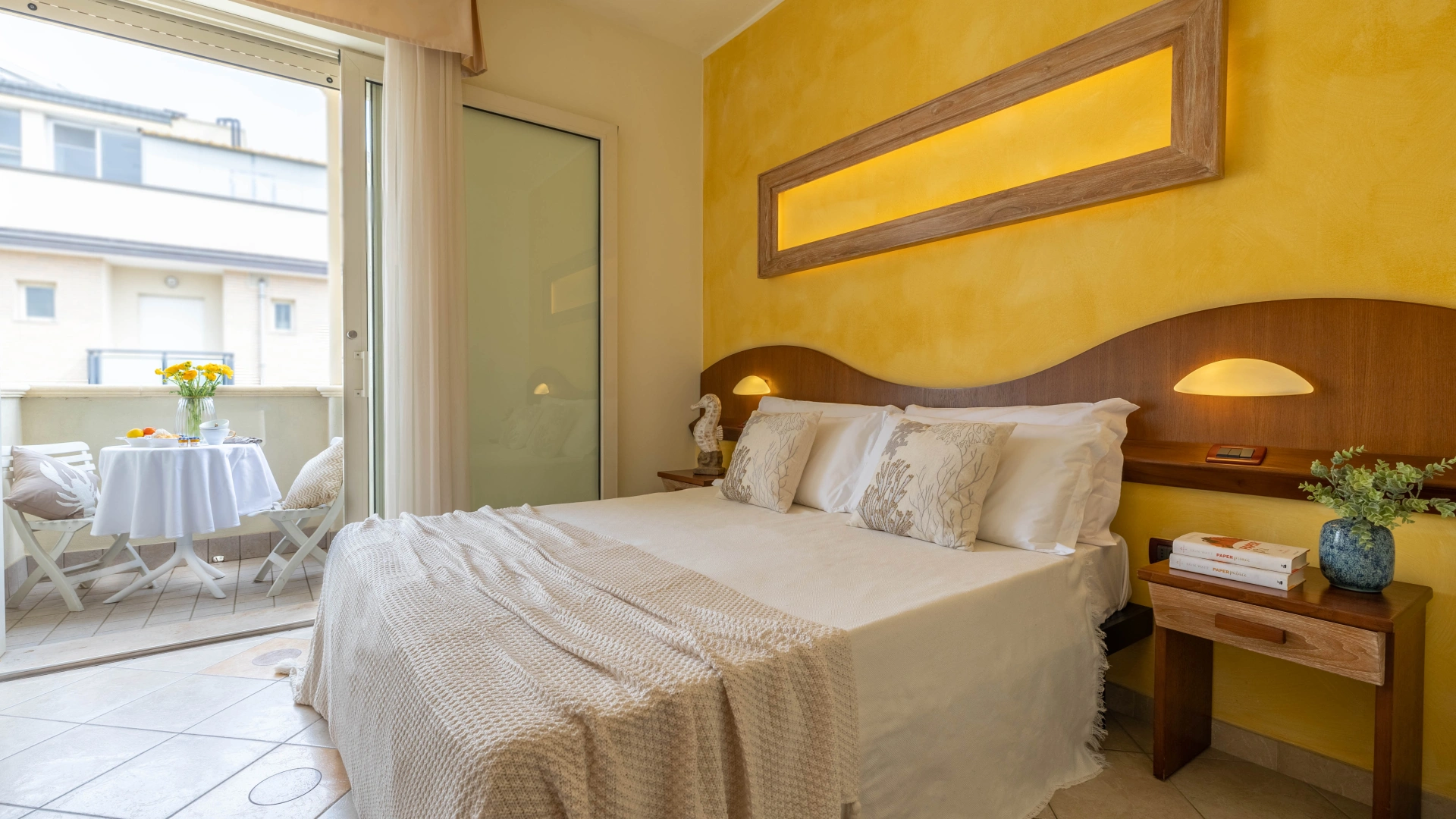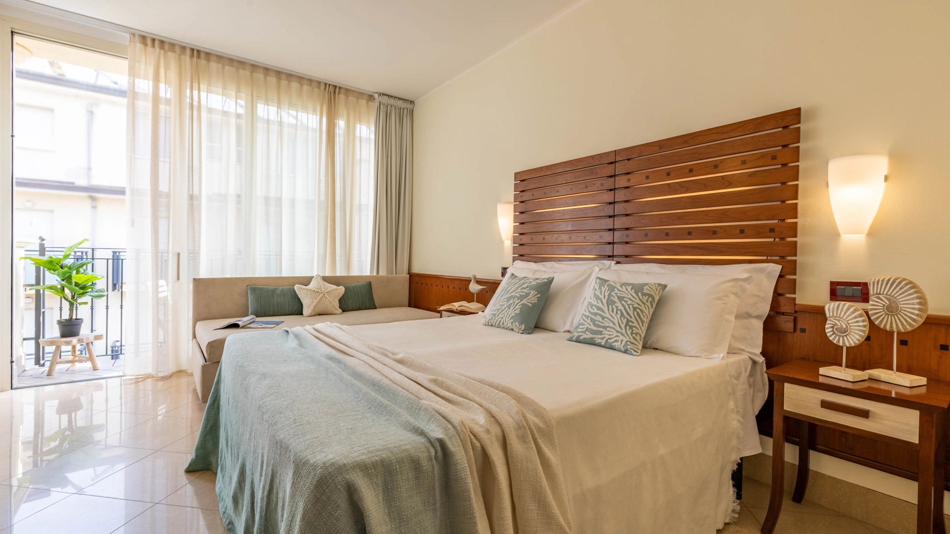 Die Zimmer werden mit einer Karte geöffnet und sind ausgestattet mit: Balkon, individuell regulierbarer Klimaanlage, Flachbild-Sat-TV, Safe, Kühlschrank, Direktwahltelefon, 200-Mbit/s-Glasfaser-WLAN, eigenem Bad mit Duschkabine und Haartrockner. Frühstück im Zimmer auf Anfrage, gegen Aufpreis.