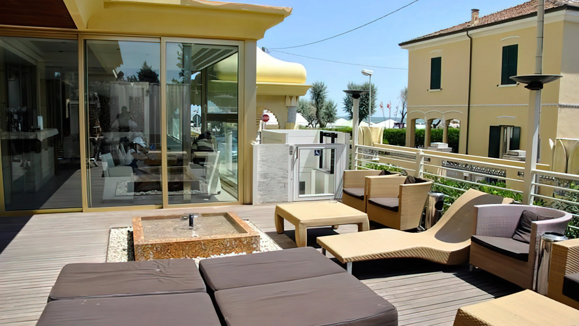 Auf der Dachterrasse im 5. Stock befindet sich ein großer Whirlpool (10–15 Personen), Sonnenliegen und Liegestühle. Kooperation mit dem i-FEEL GOOD Spa des I-Suite Hotels (am Strand von Rimini): Zugang zum beheizten Pool, zur Sauna, zu kosmetischen Behandlungen und Massagen zu Sonderpreisen. Vereinbarung mit dem Villaggio Mantra (300 m), mit kostenfreiem Zugang zum Fitnessstudio bis spätabends. Vor Ort: Wellnessbereich mit Sauna, Ruheraum und Behandlungen zu Sonderkonditionen.