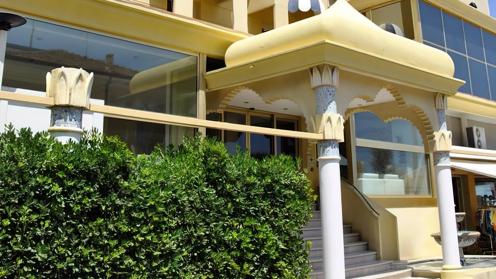 Veranda, Panorama-Dachterrasse im 5. Stock mit 10–15 Personen fassendem Whirlpool, Sonnenliegen, kostenlose Fahrräder, Lobby mit schwebender Terrasse, 24h geöffnete Lounge-Bar, Leseraum, Aufzug, Strandtücher, Begrüßungsdrink, Themenabende. Externer Wäscheservice auf Anfrage.