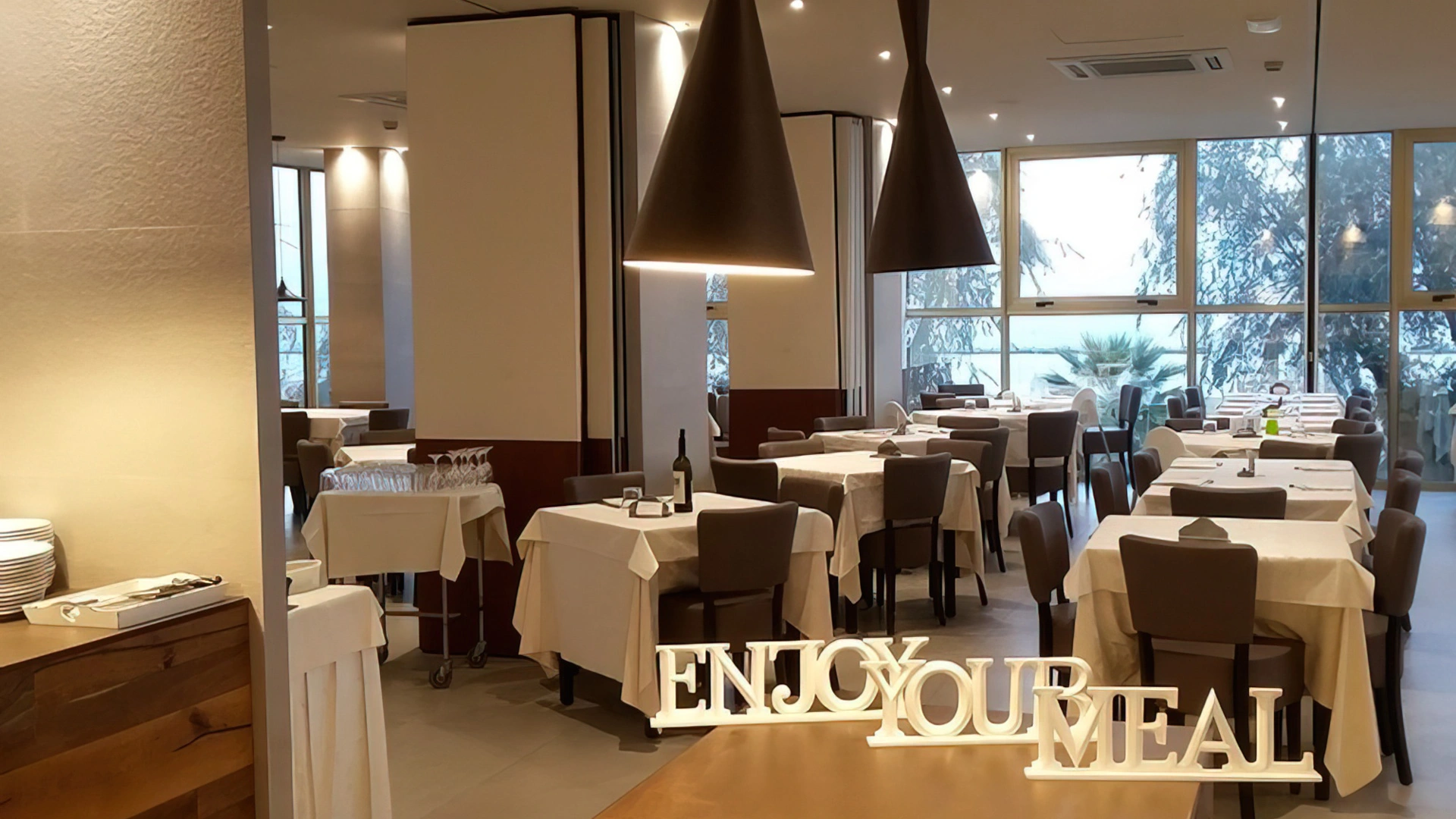 Das Hotel verfügt über einen Besprechungsraum mit Technik, Betreuung und Angeboten wie Kaffeepausen und Geschäftsfrühstück. Kostenloser Shuttle zur Messe Rimini, zum Palacongressi, Bahnhof und Flughafen. Für Geschäftsreisende: WLAN im Zimmer und in Gemeinschaftsbereichen, Internetpoint, mehrsprachiger Infopoint, Privatparkplatz, Wunschzeitung am Morgen. Am Abend wird ein „Aperitivo Romagnolo“ mit typischen Häppchen angeboten: Piadina, Käse, Aufschnitt und Sangiovese-Wein vom Fass.