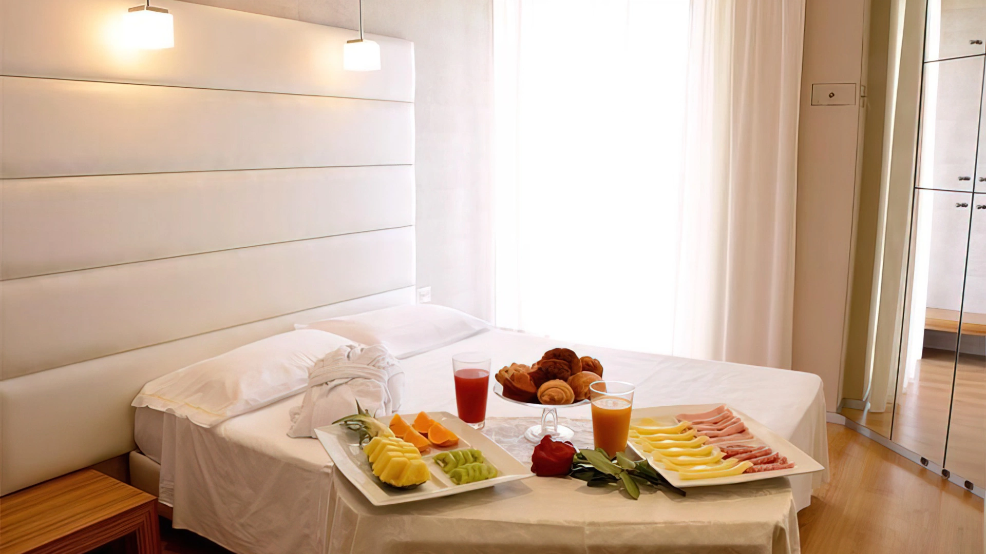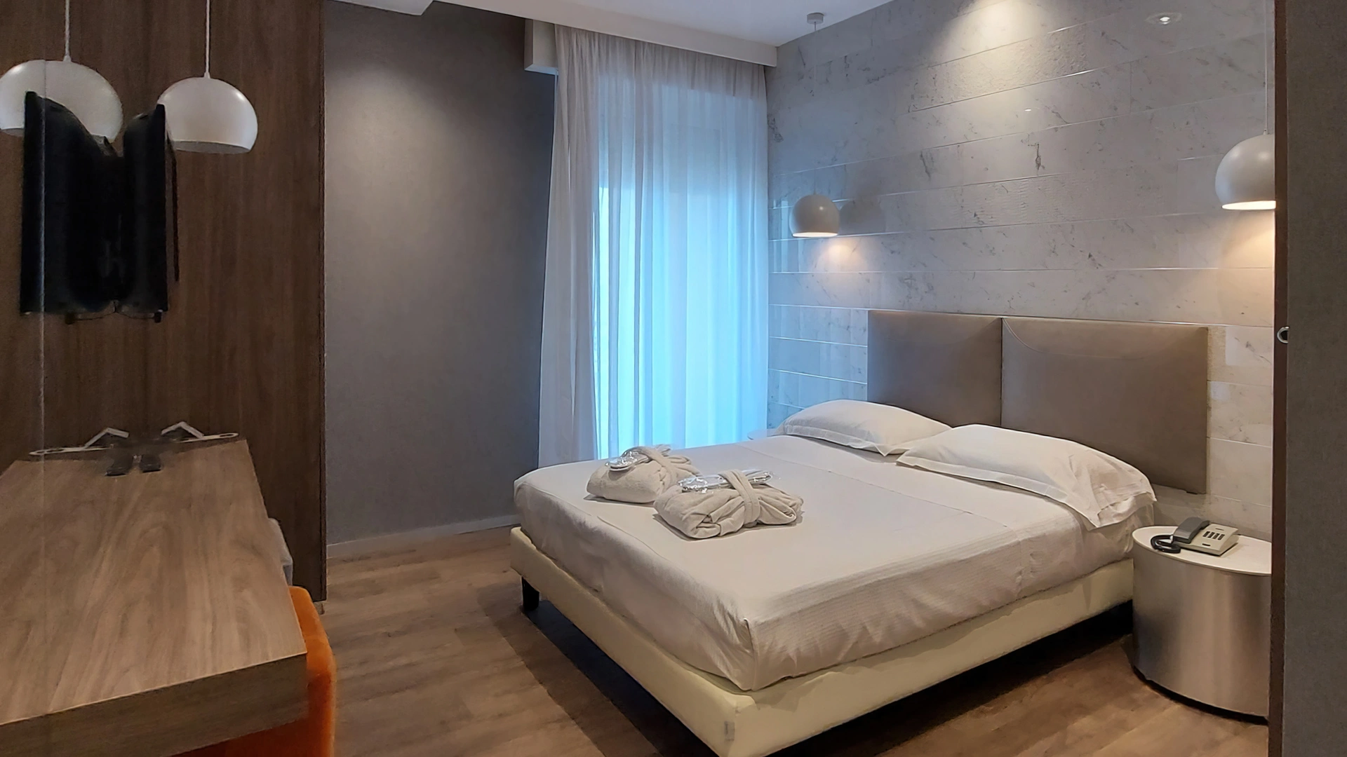 Die Zimmer verfügen über einen Balkon mit Tisch und Stühlen, Klimaanlage, schnelles WLAN, Satelliten-TV, Safe, Telefon, eigenes Bad mit Dusche oder Badewanne. Auf Anfrage: Balkon, Meerblick, Haartrockner, Minibar (gegen Aufpreis), Frühstück und Zimmerservice.