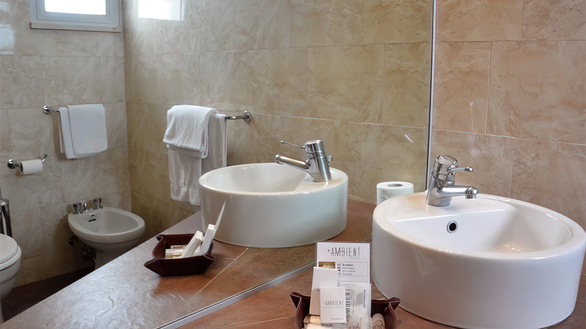 - Badezimmer-Kosmetikset: Duschgel, Duschhaube, Handseife, Shampoo, Bademantel;