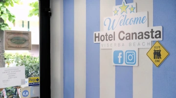 Das Hotel Canasta liegt in Viserba, einem Weiler nördlich von Rimini, an der Viale Roma, ganz in der Nähe des Meeres. Die Unterkunft befindet sich in Strandnähe und bietet bequemen Zugang zum Strand sowie zu den Küstenwander- und Radwegen. Geschäfte, Bars und Restaurants sind in der Nähe, was das Hotel zu einer komfortablen Wahl für Ihren Aufenthalt macht. Die Buslinie 4 verbindet Sie mit dem Stadtzentrum von Rimini und dem Bahnhof, sodass Sie die Umgebung auch ohne Auto gut erkunden können.