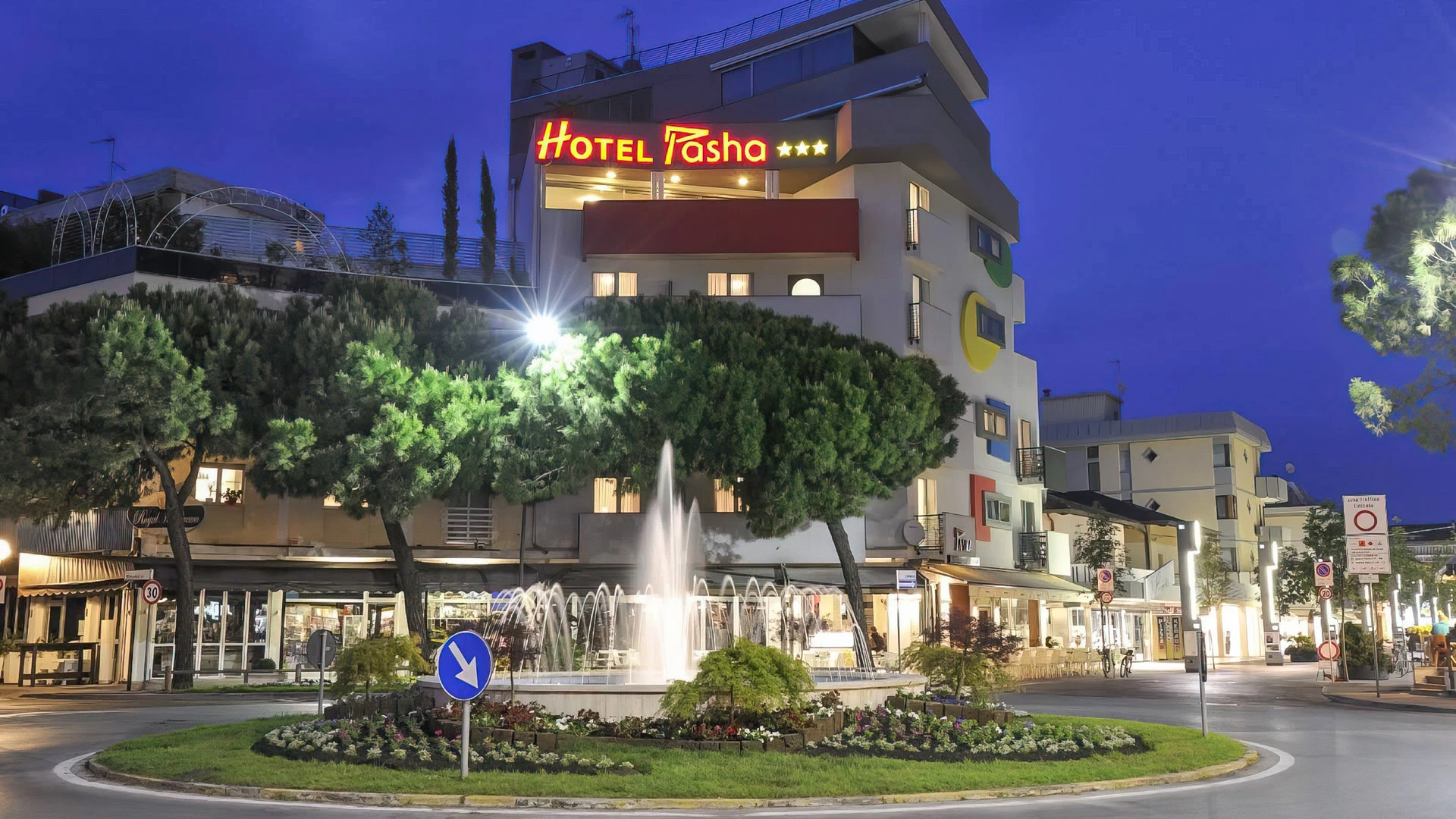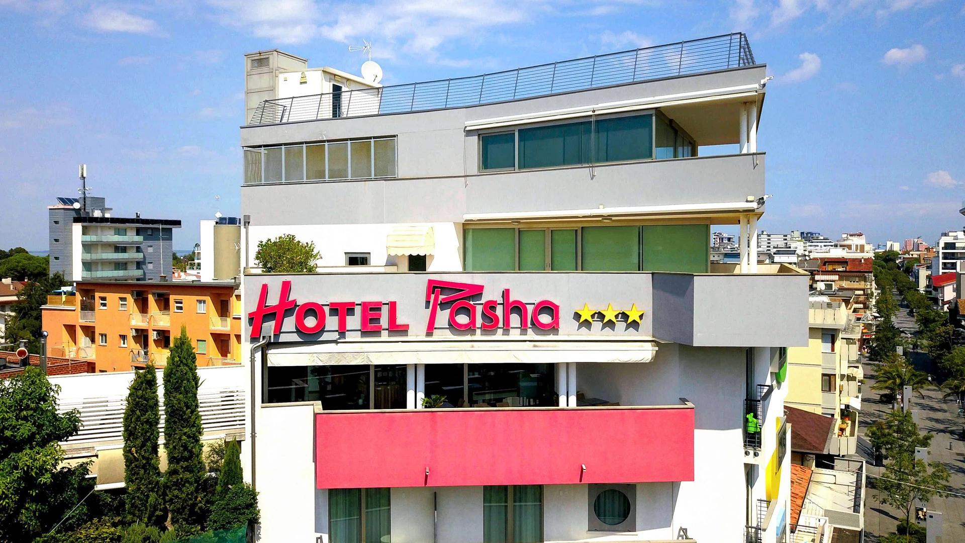Hotel Pasha ist ein 3-Sterne-Hotel im Zentrum von Lignano Sabbiadoro, unweit vom Meer entfernt. Es bietet Zimmer mit Klimaanlage, WLAN-Verbindung und Satelliten-TV, geeignet für Paare und Familien. Es verfügt über einen Privatstrand und einen Parkplatz mit Ladestation für Elektroautos. Vor Ort gibt es auch Fahrradverleih. Kleine Haustiere sind gegen Aufpreis erlaubt.