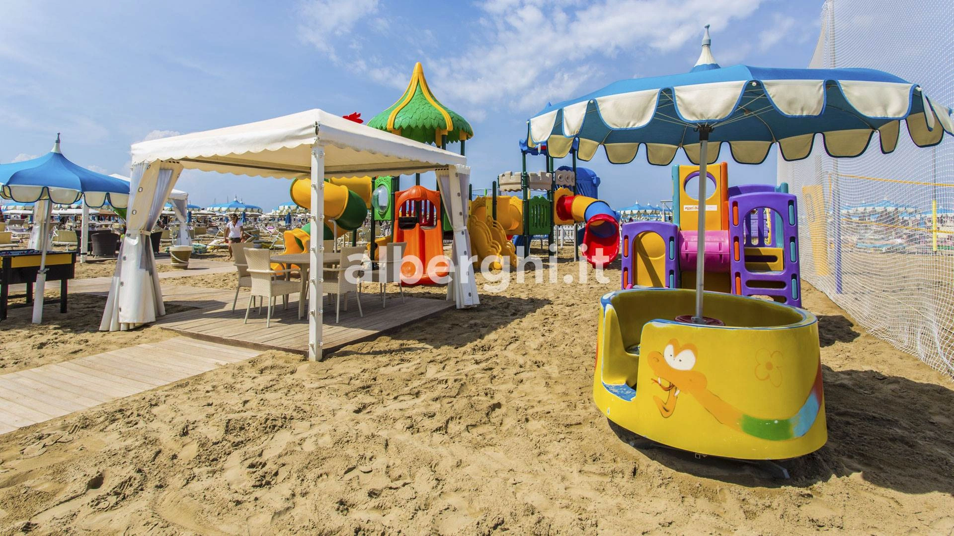 Am Strand: Spielplatz, Unterhaltung, Kindergarten, Baby- und Miniclub.