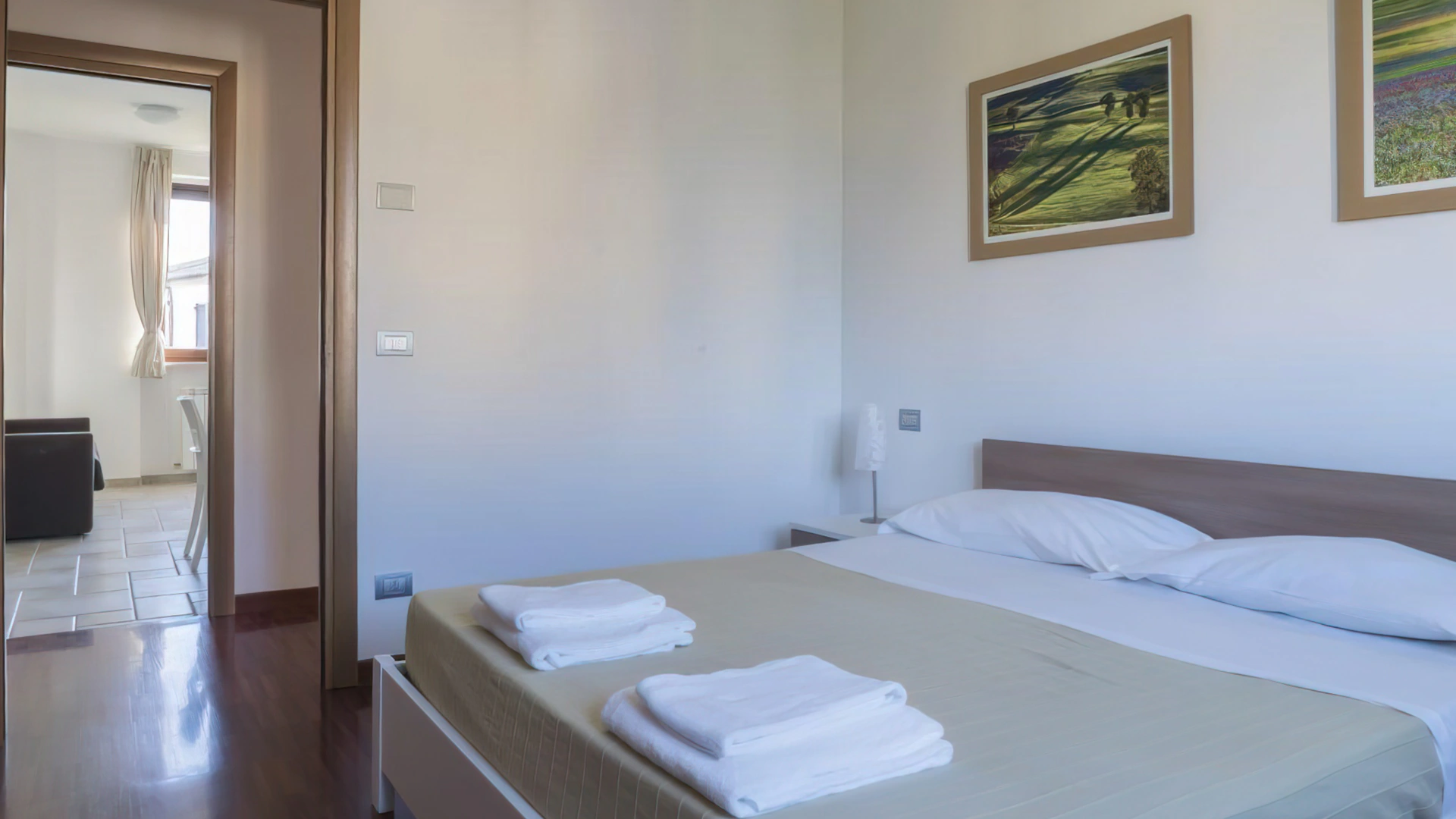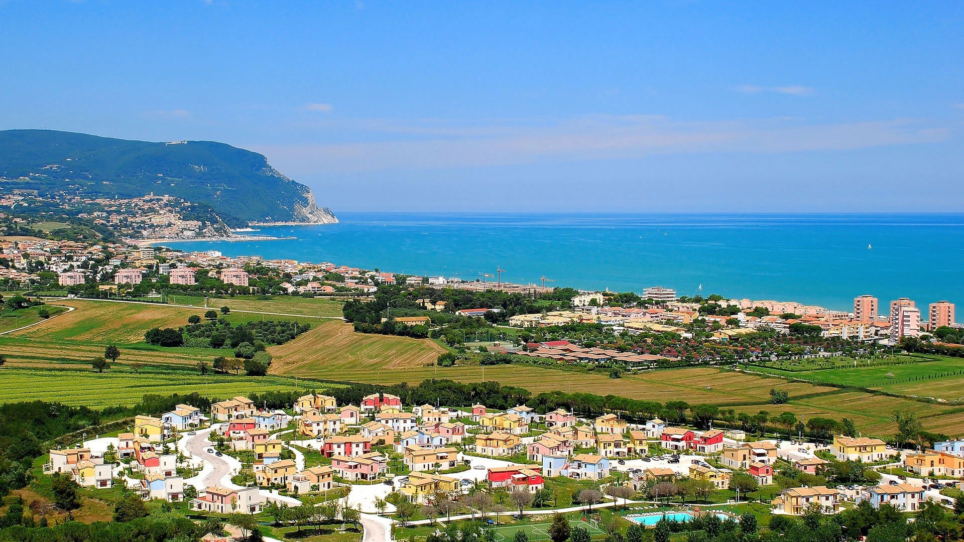 Das Resort liegt in Marcelli di Numana, etwa 15 Gehminuten vom Strand entfernt, der auch mit dem öffentlichen Shuttleservice in wenigen Minuten erreichbar ist. Das Zentrum von Numana und das alte Dorf sind etwa 15 Autominuten entfernt. In der Umgebung besteht die Möglichkeit, das Leopardi-Haus in Loreto zu besichtigen, das etwa 20 Fahrminuten von der Unterkunft entfernt liegt. Der Bahnhof Porto Recanati ist 10 Minuten entfernt, der Flughafen Ancona-Falconara etwa eine halbe Stunde.