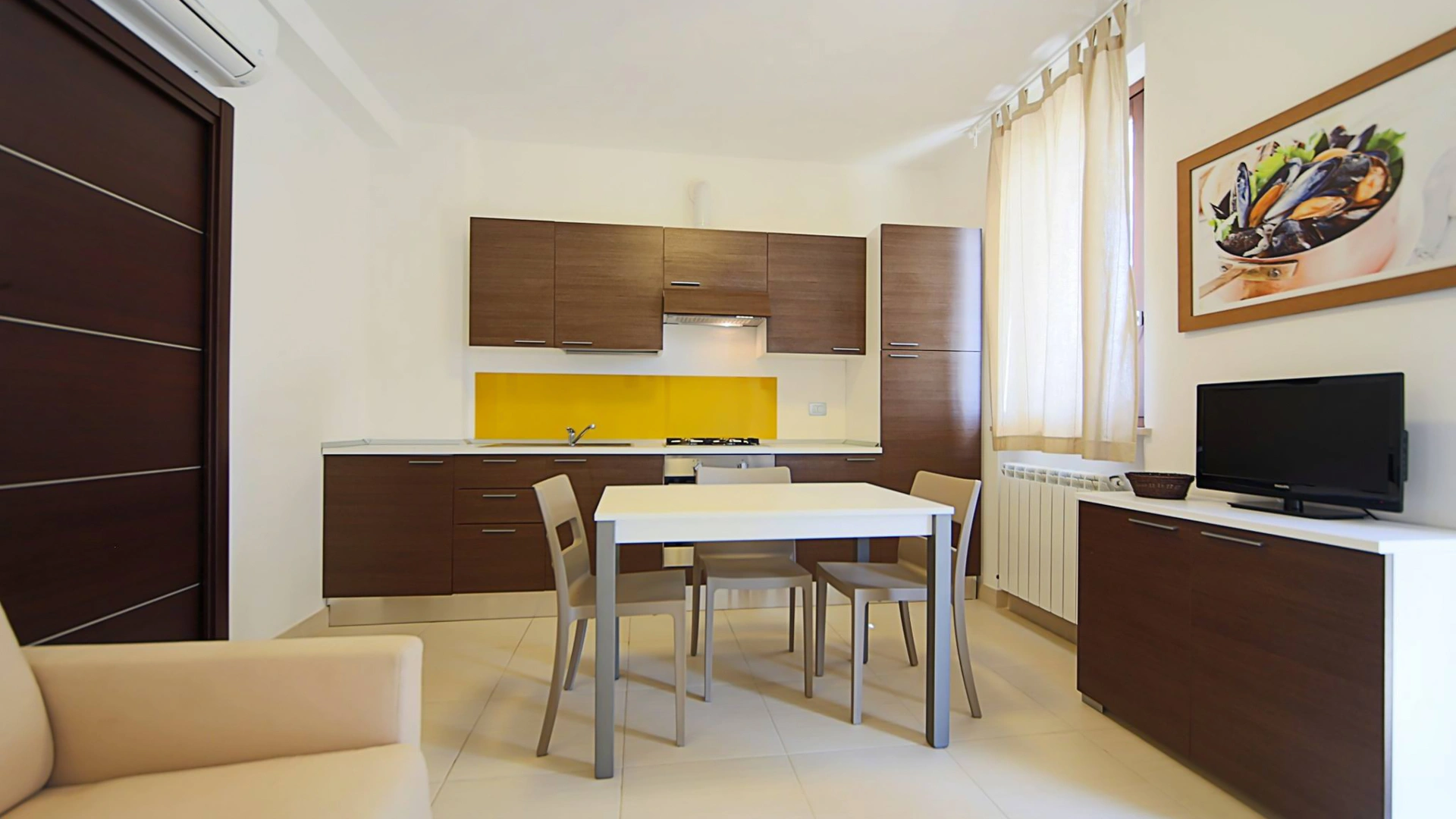 Die Struktur besteht aus 100 unabhängigen Villen, die in Zwei- und Dreizimmerwohnungen unterteilt sind und Platz für 4 bis 7 Personen bieten. Alle Unterkünfte sind klimatisiert und verfügen über ein Wohnzimmer, eine ausgestattete Küche, eine Waschmaschine und eine möblierte Terrasse oder Veranda. Die Badezimmer sind mit einer Duschkabine und einem Pflegeset ausgestattet. In den Dreizimmerwohnungen der Superior-Kategorie gibt es ein zweites Badezimmer mit Badewanne.